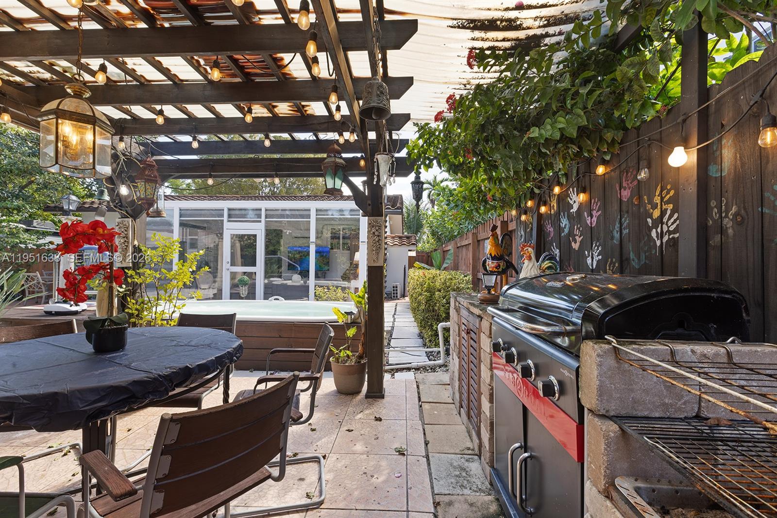 Renovated 3BR/2BA + extra room! in the Coral Gables area, minutes from Brickell and Miami International Airport. Move-in ready with above-ground jacuzzi, covered BBQ gazebo, and spacious paved backyard with mango, avocado, and guava trees, perfect for entertaining. Enclosed under AC Florida room ideal for office, gym, or lounge. Modern kitchen with stainless steel appliances and marble countertops. Impact windows, updated A/C, plumbing, and electrical. Separate laundry room, storage, and ample parking. Close to Miracle Mile, Downtown, shopping, and highways. Mobile home on side of lot may be included in sale.