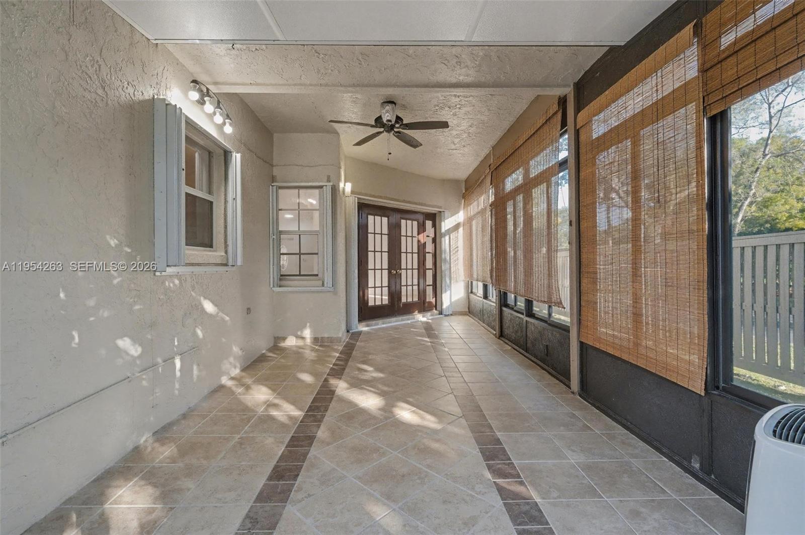 Rarely available home in The Mews - ** 2023 ROOF ** 2 Bed 2 Bath home with garage converted to a 3rd bedroom by previous owner and fully enclosed patio which could be used as a 4th bedroom or additional living area. Kitchen includes new refrigerator, reverse osmosis water filtration system and granite. Large primary bedroom suite, fruit trees, and more! Full Hurricane protection with shutters and impact front door and garage door. The low HOA includes lawn/landscaping. Enjoy the Parkland lifestyle, close to the Equestrian Center, Parks, Dog Parks, A+ Schools and shopping.