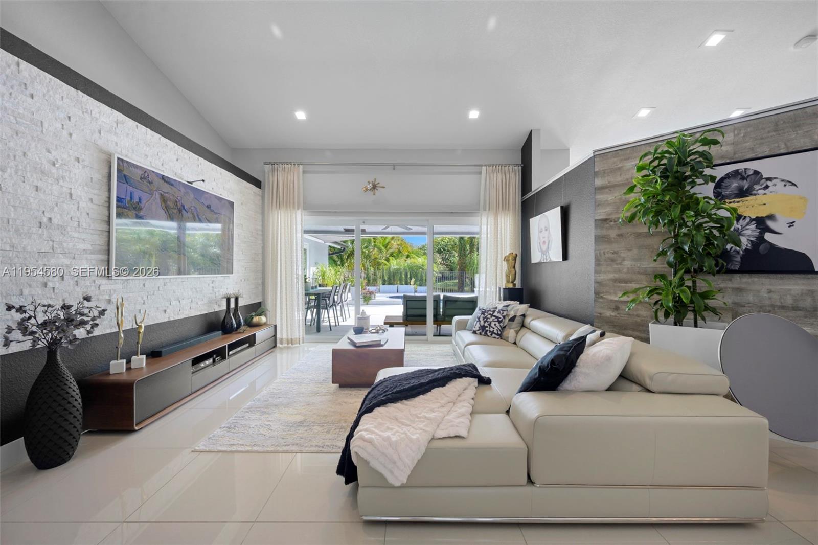 Experience modern luxury 3BEDROOMS + DEN contemporary home WITH FURNITURE INCLUDED located in the prestigious, guard-gated community of Sunset Springs.Waterfront masterpiece is defined by high-end finishes, including porcelain tile flooring, upgraded designer lighting & Custom interior accent walls.European-style kitchen and expansive open-concept living areas are bathed in natural light, perfectly complemented by integrated motorized window treatments throughout. Spacious master, featuring a spa-like bath with his-and-her vanities, a soaking tub, and shower, all with direct access to the pool and gardens. Step outside to an entertainer’s paradise.Upgraded patio boasts a professional-grade summer kitchen with a BBQ, bar, and wine fridge, plus dual fire features overlooking a heated saltwater pool and jacuzzi. Lot is a private tropical orchard, featuring Mango, Fig, Papaya, and Avocado trees, all beautifully illuminated by custom LED accent lighting. The home features hurricane impact windows (4y old),new flat tile roof with matching gutters (2y old), and a new A/C unit (2.5y old). Sustainable living is effortless with a full solar system and an EV charger located at the garage , which also includes custom storage and a secondary refrigerator. located in a secluded pocket of Weston, this residence is minutes from A+ rated schools and the world-class dining and shopping.This is more than a home; it is an unbeatable lifestyle in one of South Florida’s most desirable communities.