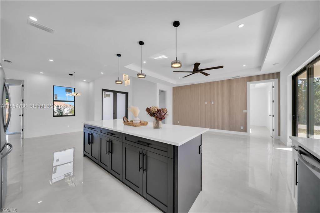 This exclusive 2026 new construction stands out on a prime CORNER LOT, offering enhanced privacy and superior curb appeal across 2,391 total sq ft. The thoughtfully designed layout features 4 bedrooms and 3 bathrooms, including a Double Master Suite and a versatile 4th bedroom perfect for a home office. Built for safety and efficiency, the home is fully equipped with impact-resistant windows and doors. The gourmet oversize kitchen serves as the heart of the home, boasting a 9-foot island, quartz countertops, full backsplash, and under-cabinet LED lighting. Luxury finishes abound, from floor-to-ceiling porcelain tile and smart mirrors to smart home technology. The exterior is built for durability and comfort, featuring an extended lanai and a 2-car garage both finished with high-end epoxy flooring, a paved driveway, a 4-station sprinkler system, and a modern high-efficiency water filtration and septic system. Take advantage of EXCLUSIVE INCENTIVES available for this model home, schedule your appointment today!