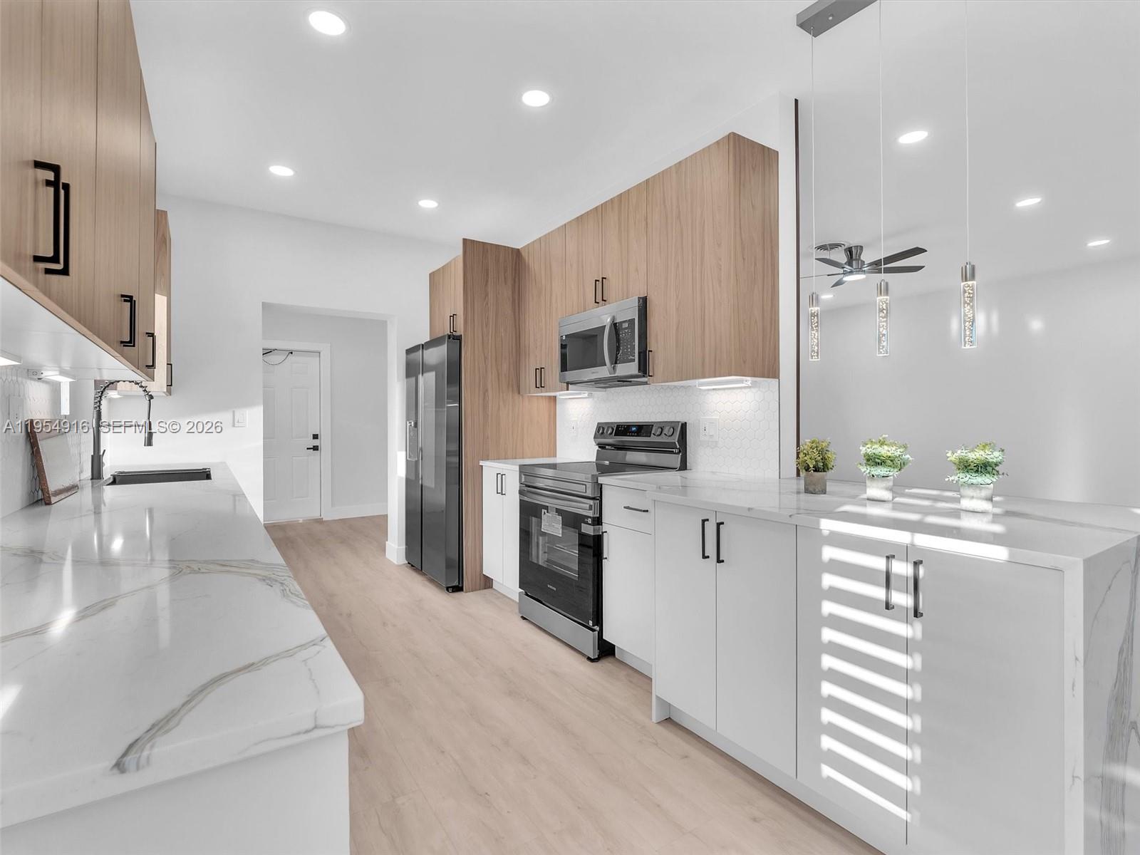 Beautifully renovated 4-bedroom, 2-bath home with pool in the heart of Imperial Point, just minutes from the beach. This move-in ready residence features a brand-new kitchen with waterfall island and new appliances, updated bathrooms, new luxury vinyl plank flooring throughout, and new interior doors. Additional upgrades include a new water heater, new LG washer and dryer, new driveway, fresh exterior paint, and new landscaping, creating excellent curb appeal. The bright, open layout flows seamlessly to a large private pool and fully fenced backyard, perfect for entertaining and everyday living. Plumbing was recently inspected by the city and confirmed in good condition. The property offers a circular driveway, covered parking, and is located on one of Imperial Point’s most desirable streets. No HOA and no flood zone. Prime location close to beaches, top-rated schools, dining, shopping, parks, and major conveniences. A perfect option for end users or buyers seeking a fully refreshed South Florida home.