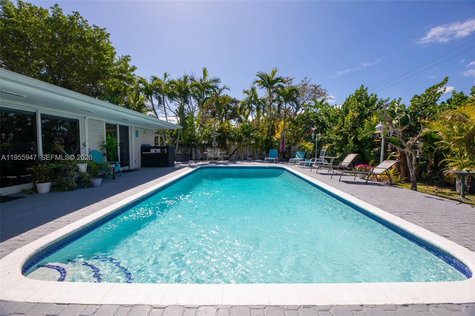 Beautifully renovated 4-bedroom, 3-bath home plus den featuring an open-concept living area designed for modern living and effortless entertaining. The home offers a private and tranquil outdoor space perfect for relaxing or hosting, with beautiful views from nearly every room—enjoy sunrise from the front porch and sunset views over the pool. This property has been thoughtfully upgraded with hurricane impact windows and doors, a 2017 roof, new PVC plumbing, and a fully converted garage, all completed with permits and fully code-compliant. The den offers flexibility as a home office, guest space, or additional bedroom. The home feels peaceful and private while offering excellent functionality, including a driveway that can accommodate up to six vehicles. Recent permitted improvements include PVC gates (2021), hurricane impact windows and doors and cast iron to PVC plumbing replacement (2022), and in 2025 two new A/C units, a new hot water heater, and a garage conversion meeting all mechanical, electrical, and plumbing requirements. A well-maintained and move-in-ready home offering comfort, quality, and long-term peace of mind.