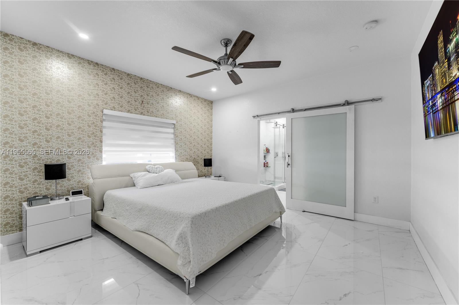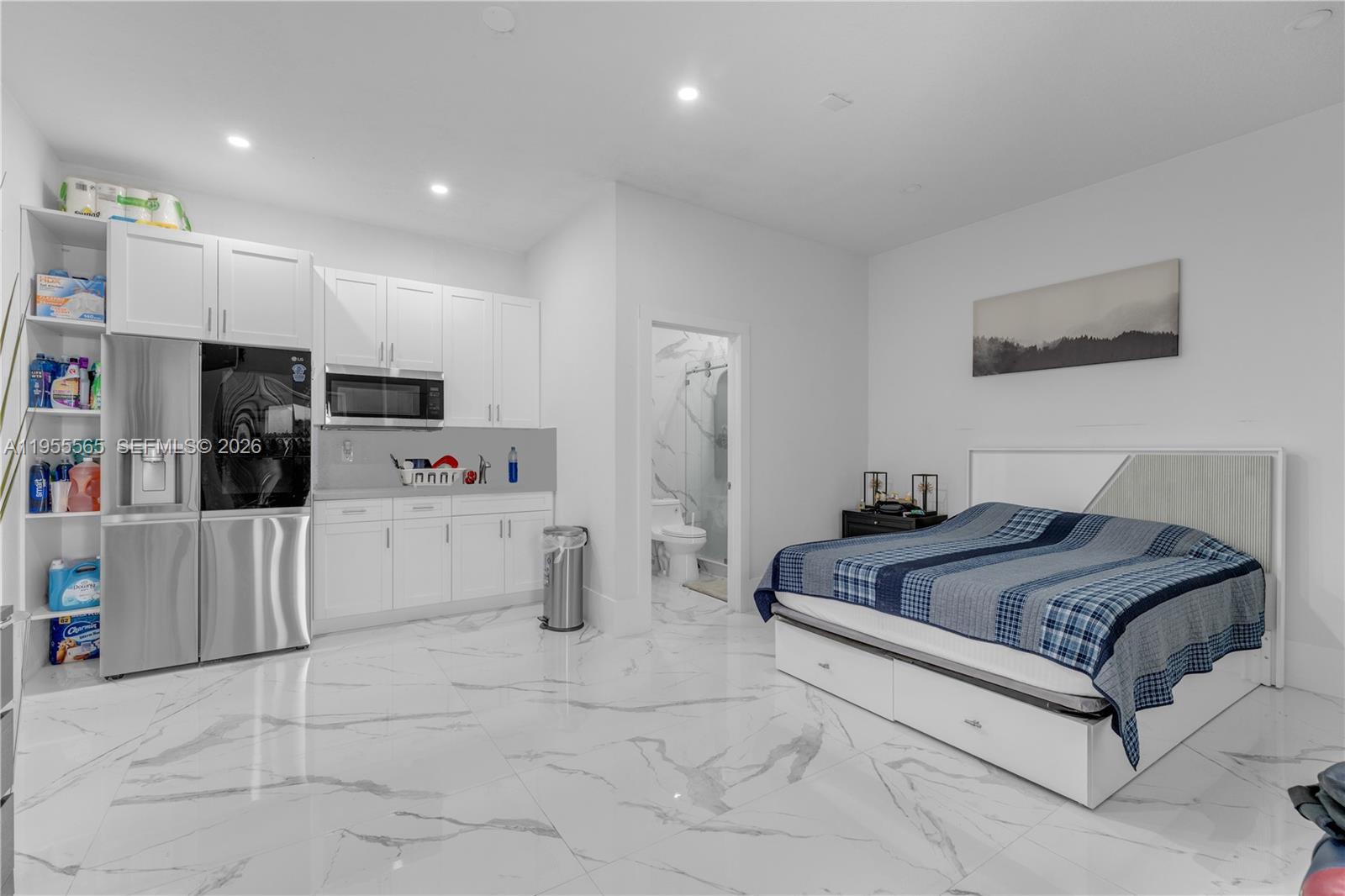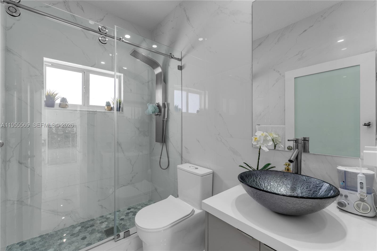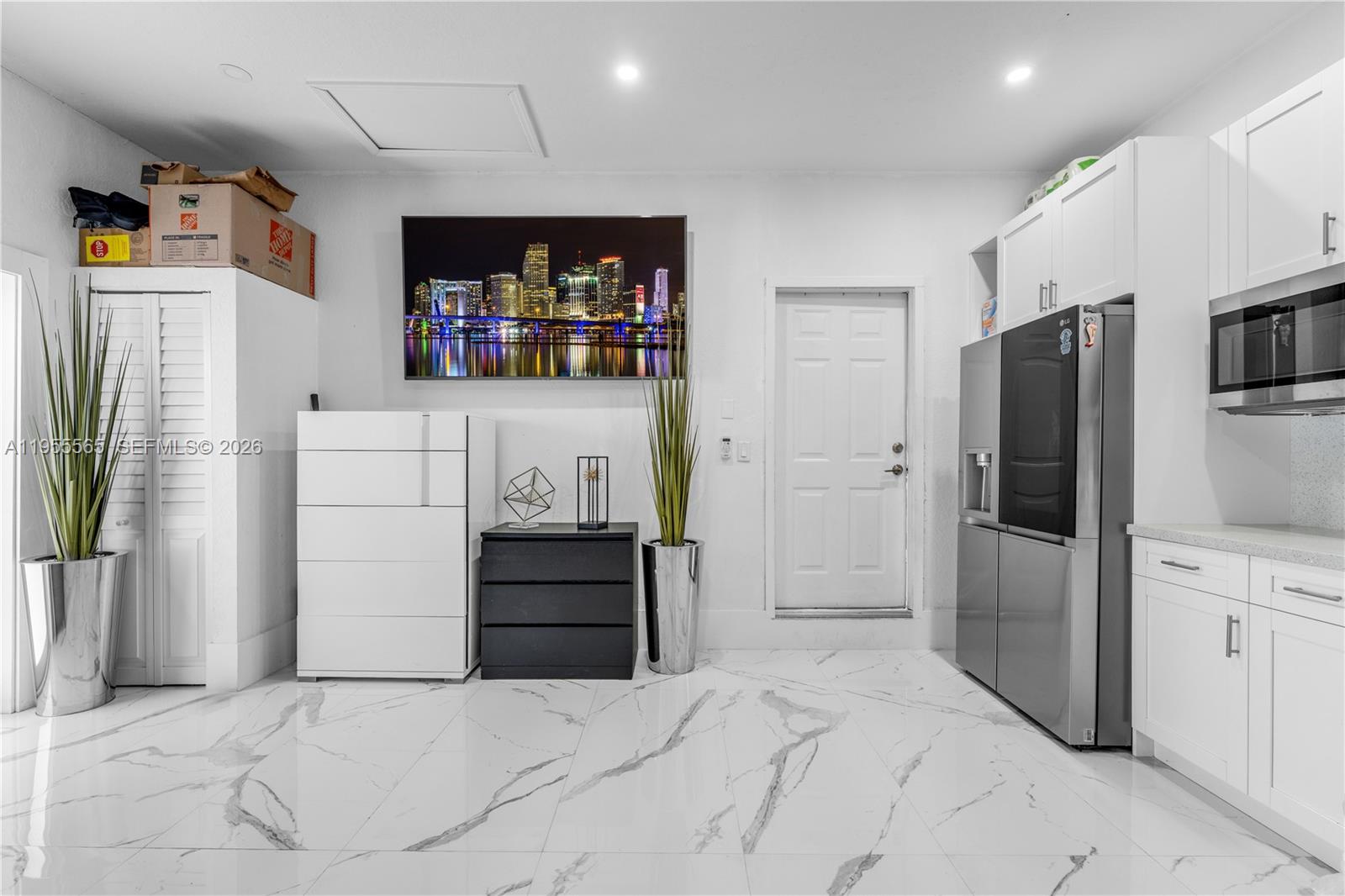 Beautifully remodeled single-family home featuring brand-new tile flooring throughout, a bright white modern kitchen, and updated bathrooms. The property offers custom interior doors, a custom built-in wall unit, built-ins, California closets throughout, electric window shades in the living room, impact windows and doors for added security and energy efficiency, and a full sprinkler system. Enjoy the inviting backyard with pool, covered terrace, and fully equipped outdoor kitchen—perfect for entertaining. The former two-car garage has been converted into private in-law quarters with a new bathroom, ideal for extended family, home office, or potential rental income. A true move-in-ready gem!
