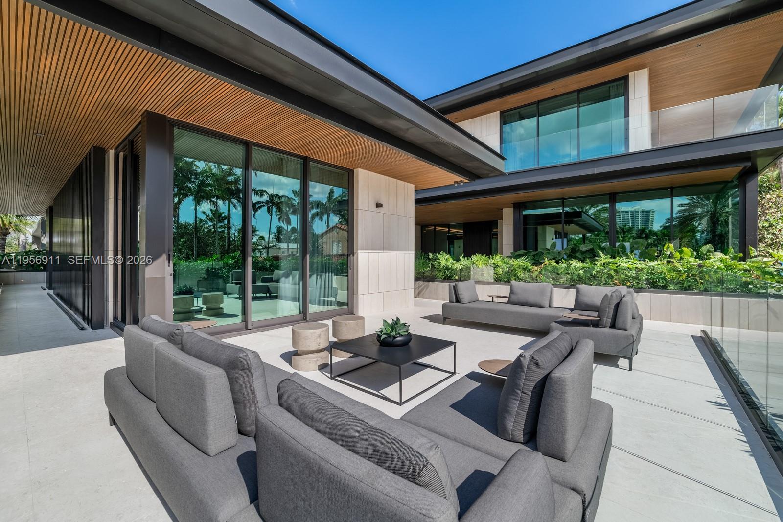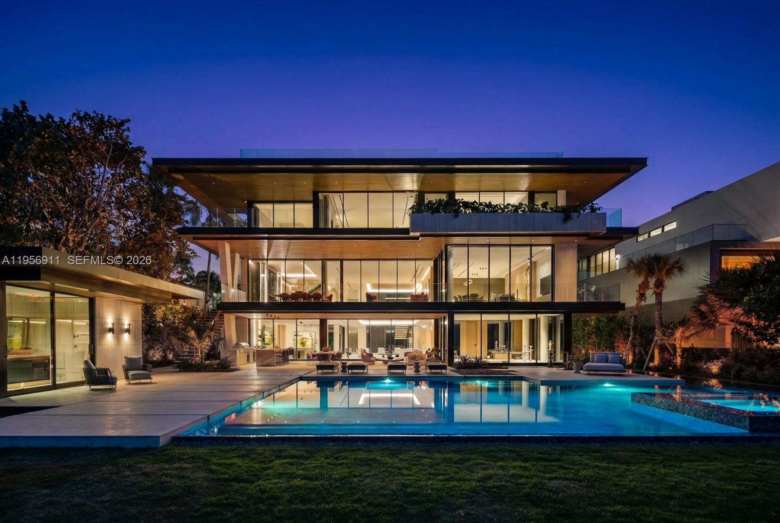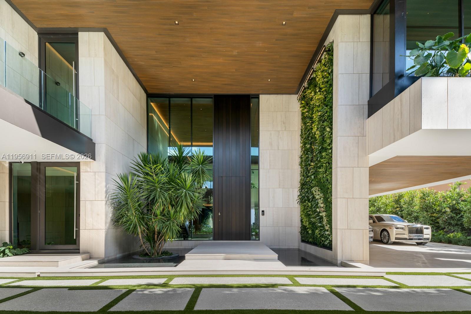 Step Inside With Me! 255 Ocean: the most magnificent modern mansion debuts at a new price on the private sands of Golden Beach. Newly completed by TREO and SDH Studio, the façade is draped in greenery and natural stone with no stucco in site. Experience 23’ ceilings upon arrival, a sculptural travertine staircase, and infinite ocean views. Book-matched travertine floors echo the organic movement of the sand. White oak millwork and paneled walls exclusively by La Dolce Vita introduces Italian craftsmanship at every turn. The hosting spaces unfold seamlessly from the beachside entertainment level to the formal salon with centerpiece marble bar, and the ultimate upstairs media room. The oceanfront kitchen showcases monolithic curved islands, Dornbracht fixtures, a breakfast TV lounge, and chef's kitchen. The primary suite is clad in warm oak featuring dual dressing rooms, a hand-carved soaking tub sculpted from a single block of stone and a nearby office suite. Designed for longevity, wellness is woven throughout - fitness studio, massage room, sauna, cold plunge, and enhanced air quality. Outdoors, a 75’ lap pool pairs with an oversized jacuzzi, while the rooftop offers an additional pool & spa overlooking the beach. More highlights include theater, dedicated office, guest house, 2 elevators, staff room, garage, carport and motor court. Contemporary yet warm, tropical yet refined, this home is designed not just to be admired, but to be lived in. 1 of only 60 homes on the sand.