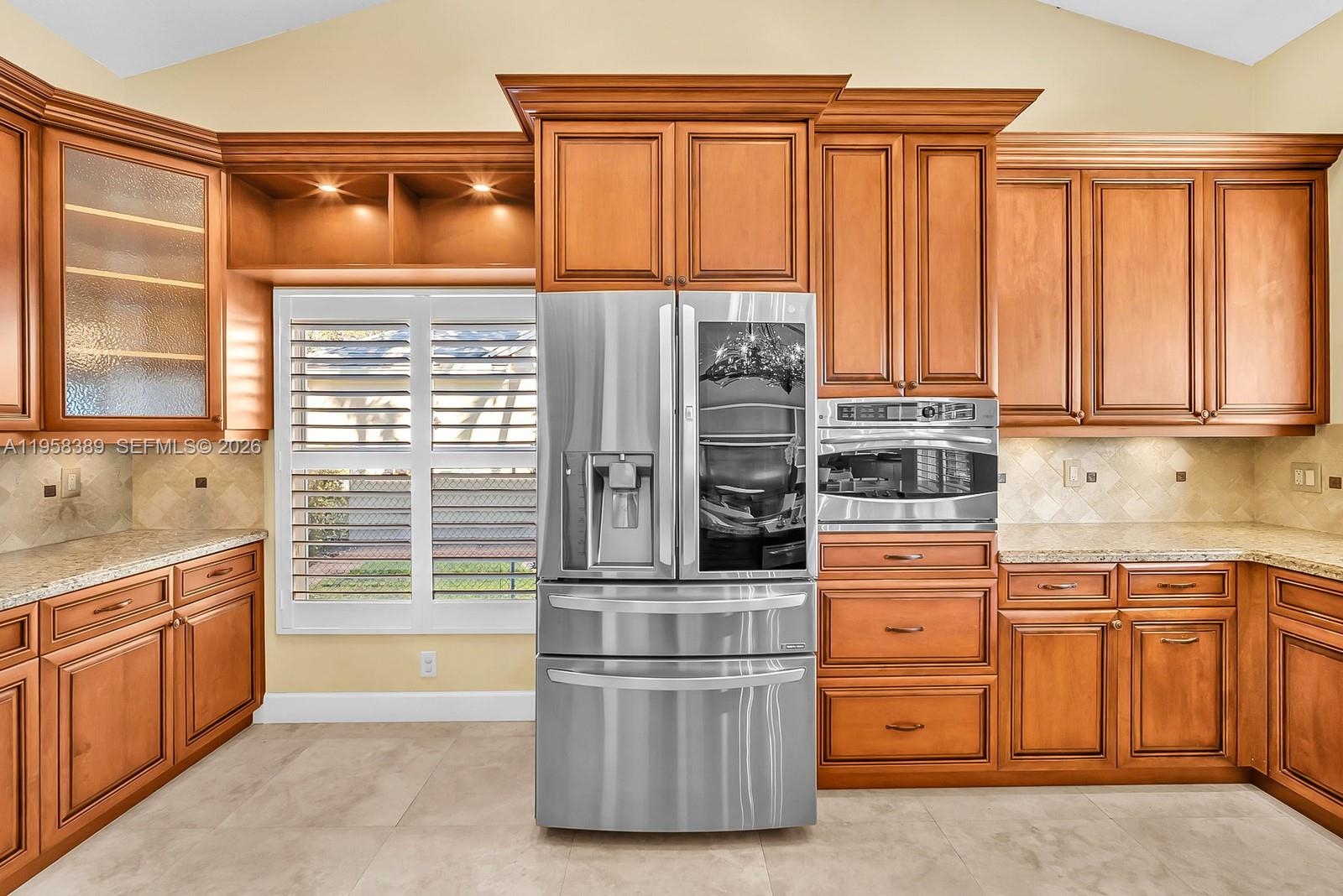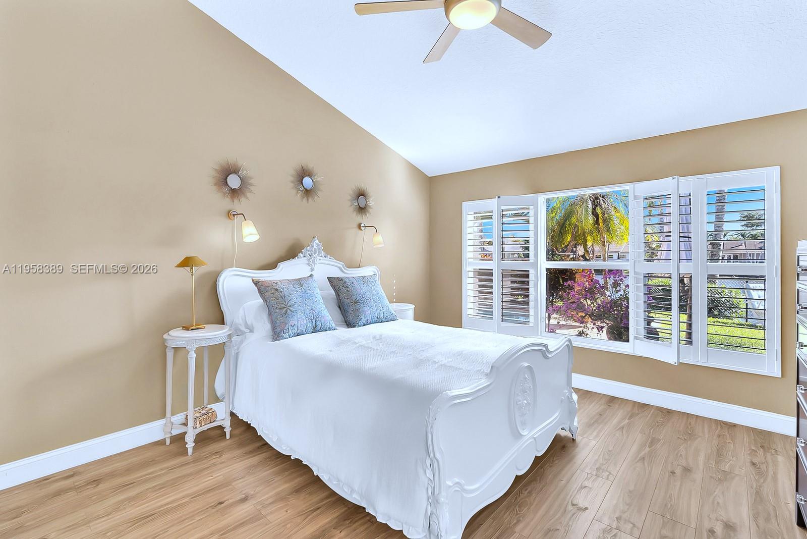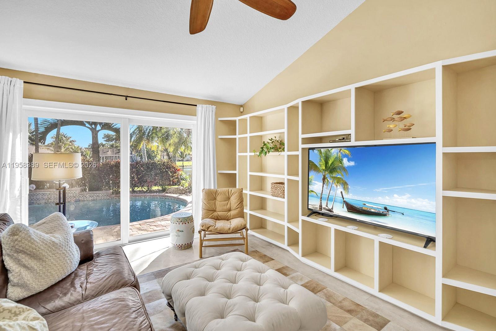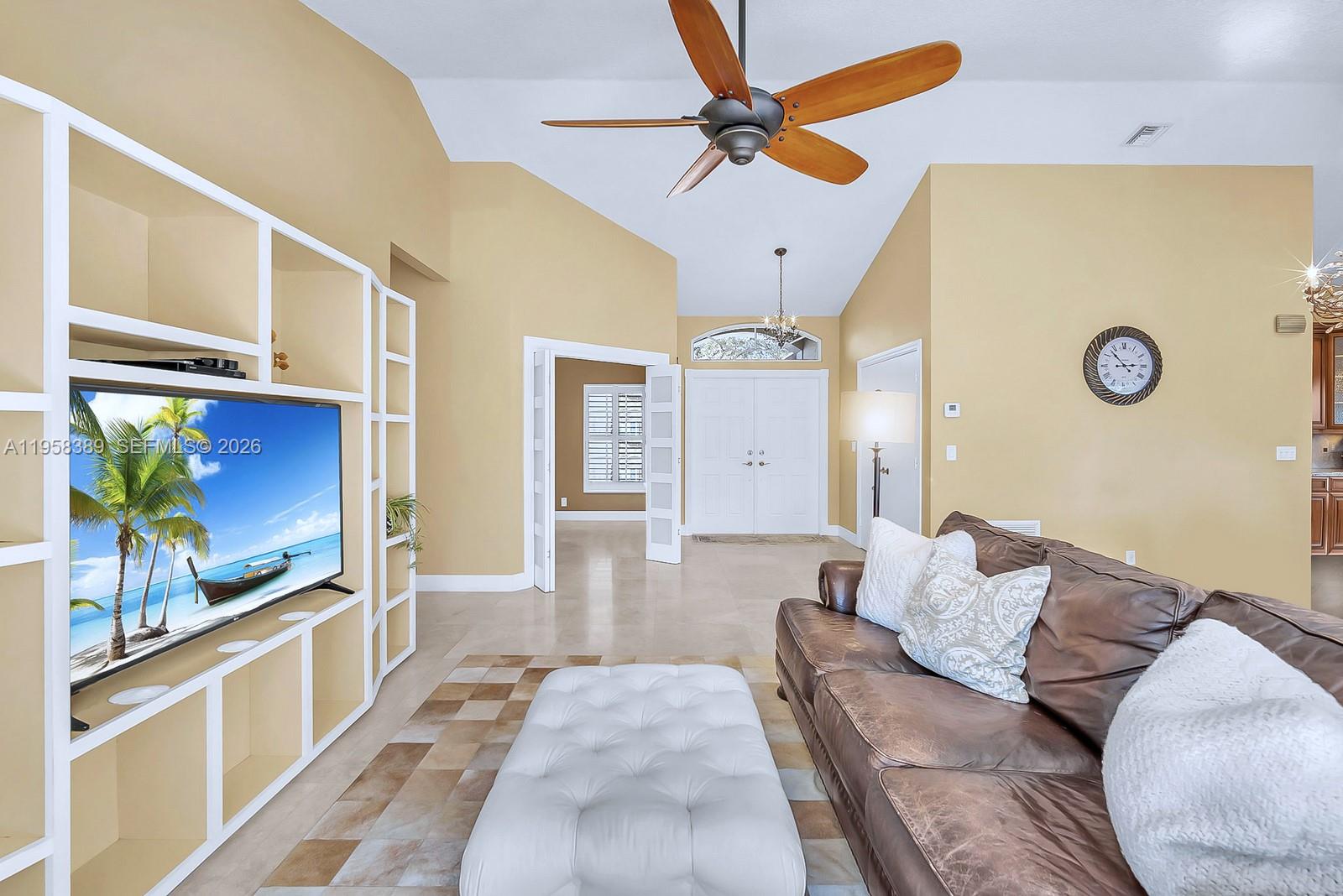 Spectacular pool and lakefront home in Cooper's Grove situated on a 9,502 sq ft waterfront premium lot. Home features a brand new 2026 roof, and full impact windows and doors. The residence offers 3 bedrooms + a den/office easily used a 4th bedroom and 2 full bathrooms. The eat in kitchen includes a picture window, wood cabinetry with pull out shelves, stainless steel appliances and an island and opens to the dining area and family room, creating a functional and open living space. Vaulted ceilings and numerous windows provide abundant natural light, with living areas and the kitchen overlooking the pool and lake. Elegant Plantation shutters throughout, travertine flooring in the main areas and water resistant wood-style laminate flooring in the bedrooms. The primary suite includes gorgeous high ceilings a large window with incredible views of the backyard and lake, a walk-in closet, and an en-suite bathroom with dual sinks and a fabulous shower. Outdoor features include a free form saltwater pool with a variable speed pump, southern exposure and tranquil lake views, offering a private and relaxing setting on a fenced backyard with tropical landscaping with lighting. Additional features include a variable speed newer A/C, new water heater being installed and copper plumbing (no poly). Home is located within the Cooper City school district and offers convenient access to shopping, dining, parks, and local amenities.