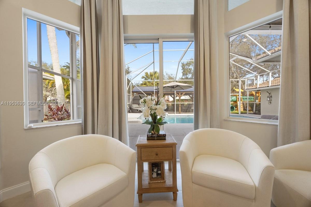 Step into this stunning home and make it your personal sanctuary! Set within the prestigious Isles community with a 24-hour manned gate, this extensively upgraded residence features a sought-after 3-way split floorplan offering privacy and flexibility for families and guests. The home showcases major improvements, including full impact windows and doors (2025), impact garage doors, and a 2019 roof for peace of mind. Enjoy the saltwater pool with a 2023 Rheem pool heater, child safety fence, and fenced yard, plus a flexible outdoor living area ideal for a future outdoor kitchen, sun deck, or entertaining space. Additional highlights include security cameras, exterior lighting, alarm system, and a 2025 Rheem 80-gallon heat pump water heater. The finished garage features a custom adjustable slat wall system designed for efficient storage and organization. The upgraded kitchen features KitchenAid appliances (2025), a wine fridge, and a built-in breakfast nook for effortless everyday living. The expansive primary suite offers a large walk-in closet leading to a luxurious spa-style bath with a fireplace, soaking tub, and double vanities. Secondary bedrooms feature new flooring and crown molding. High ceilings, custom decorative wall molding, barn doors, designer lighting, and built-ins in the family room create a refined, high-end feel throughout. A move-in ready home that checks every box — schedule your private showing today.