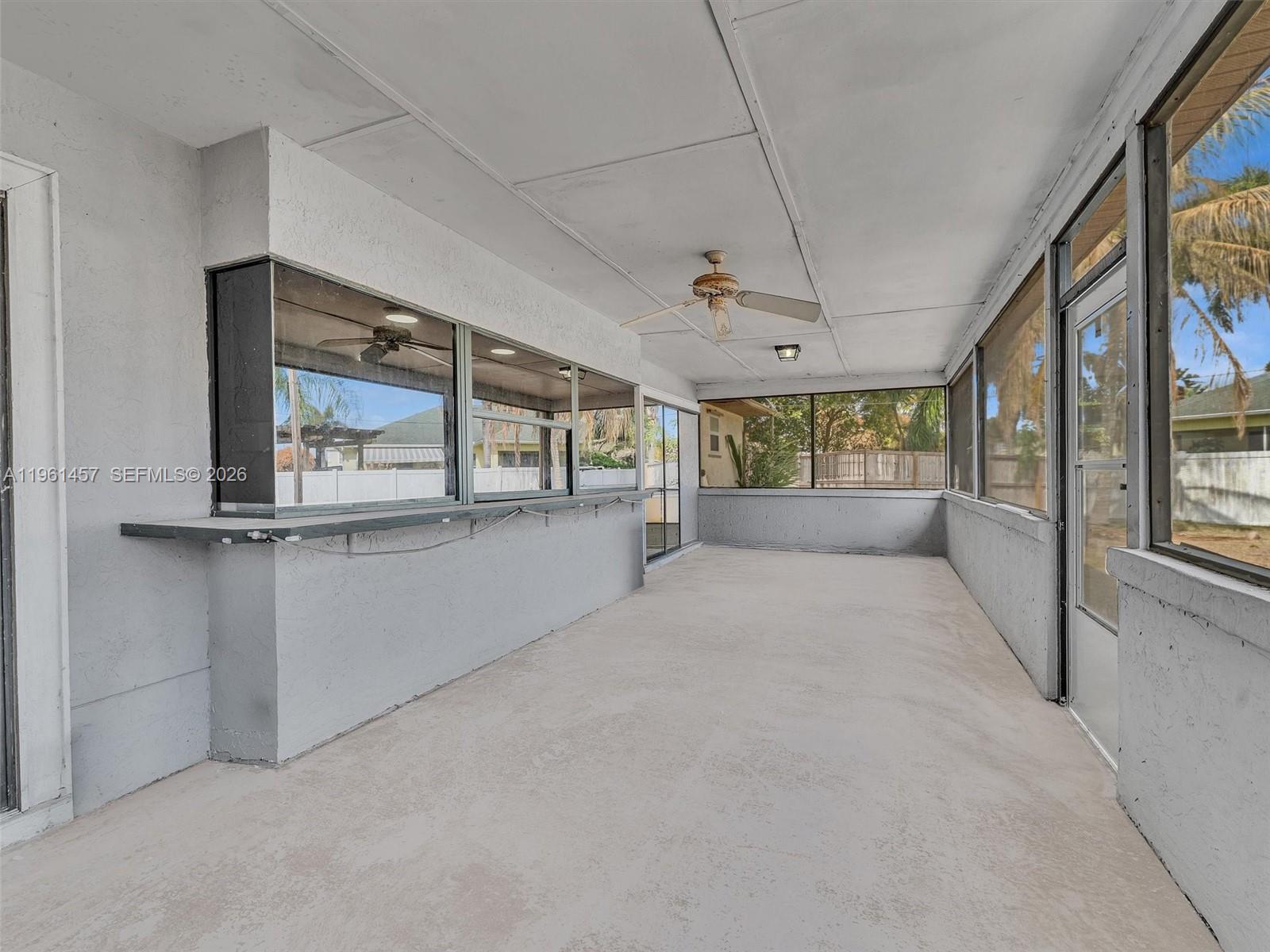 Incredible opportunity to own this charming 2 bedroom, 2 bathroom home on a spacious corner lot located in the heart of Port St. Lucie. This pristine property was recently renovated with porcelain tiles throughout and updated master bathroom. An open kitchen, adjacent to a large dining room, with a new Samsung refrigerator and garbage disposal, recently installed. A split bedroom layout with spacious walk-in closets and plenty of storage room. The fencing was just replaced along with a new flat roof. It features an oversized covered patio with a pass through bar top, giving you that great feeling for relaxation and entertaining your family and friends.