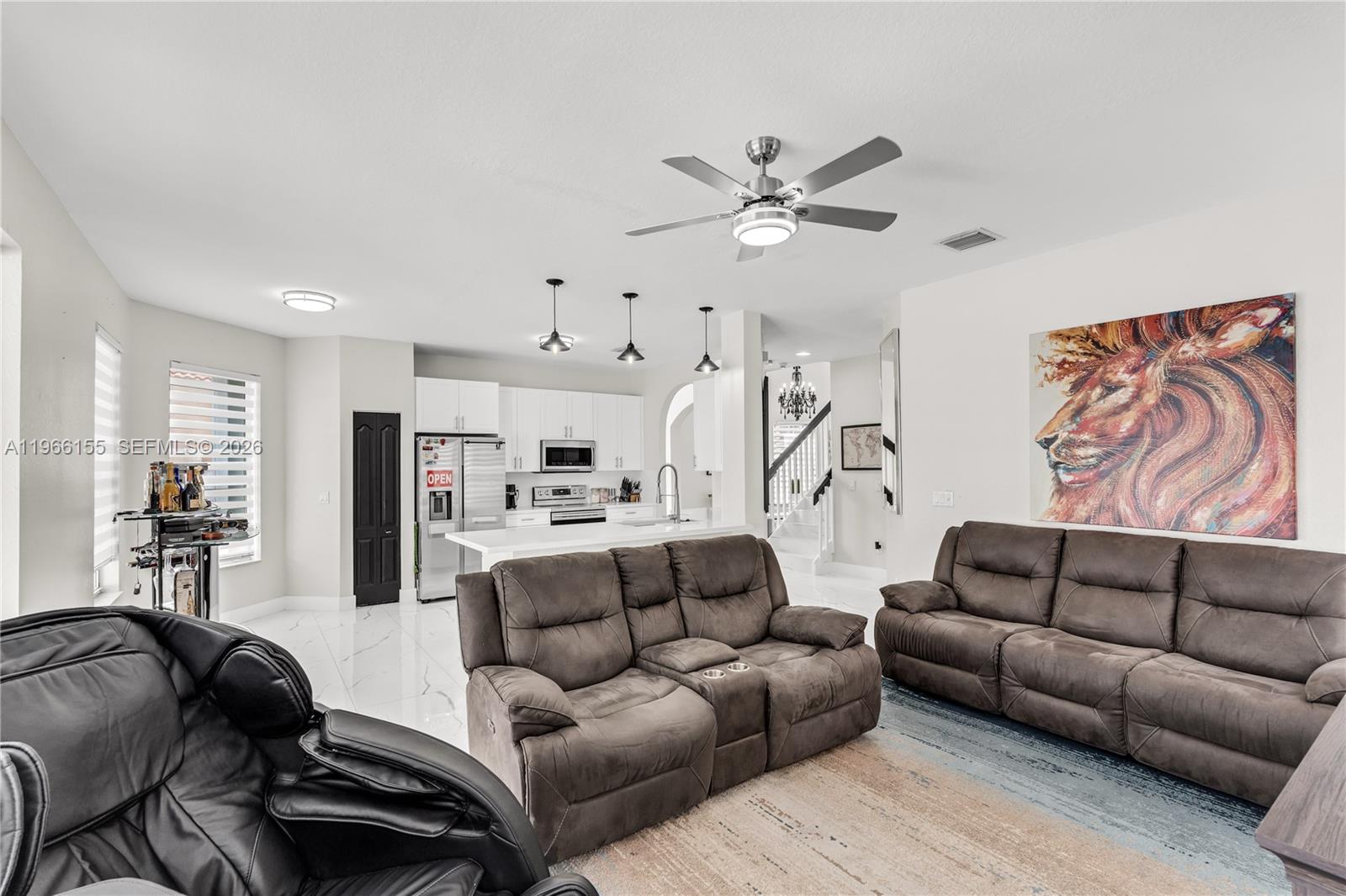 (LISTED UNDER APPRAISED VALUE) READY FOR A NEW OWNER Located in the desirable Portofino Oaks at the Waterstone Community, this fully updated, modern single-family home offers high ceilings, tile flooring on both levels, and a generous, open layout for comfortable living. The first floor features a formal living and dining room, one bedroom and one full bathroom, a large family room, a well-appointed kitchen with stainless steel appliances, a laundry room, an additional pantry/storage closet, and a 3-car garage. A patio with a pergola provides an ideal outdoor space for relaxation or entertaining. The second floor hosts four spacious bedrooms and two full bathrooms. The primary suite includes a large bathroom and a walk-in closet. Additional highlights include a recent A/C upgrade (1 year old, 5-ton unit) and a roof installed in 2021. Conveniently located near the Florida Turnpike, Baptist Hospital, shopping centers, schools, and more.