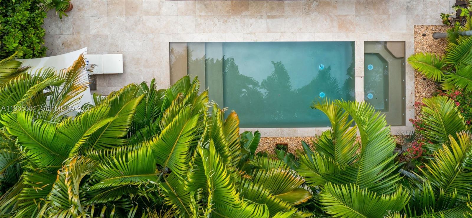 A rare jewel, this sun drenched home delivers a true resort-style lifestyle rarely found in Miami. Thoughtfully curated for year-round enjoyment, the entire backyard was reimagined in 2023 into a private retreat featuring a heated saltwater pool with separate spa, with custom aggregate finish, Moroccan tile, refined stonework, lush palm landscaping, and dramatic night lighting. A pergola, summer kitchen, and covered porch create multiple outdoor living and entertaining zones—offering the kind of effortless indoor-outdoor lifestyle typically reserved for luxury resorts. Beyond the setting, the home offers meaningful, high-value improvements that elevate comfort and peace of mind. The property sits on naturally high elevation-no flood zone-with a dedicated drainage system. Inside, ceilings are higher than typical for homes of this era, complemented by a thoughtfully remodeled interior, modern linear slot diffusers air vents, and zoned comfort with supplemental mini-split AC units. Additional upgrades include a 2015 roof, 100% impact windows, impact front door and patio slider, upgraded electrical panel with surge protection, improved plumbing, resealed driveway, reverse-osmosis kitchen water filtration, and a fully automated pool and spa system. Truly this home has been impeccably maintained, cared for and loved. A rare opportunity for buyers seeking a refined, turnkey retreat delivering privacy, quality, and a true Florida resort experience.