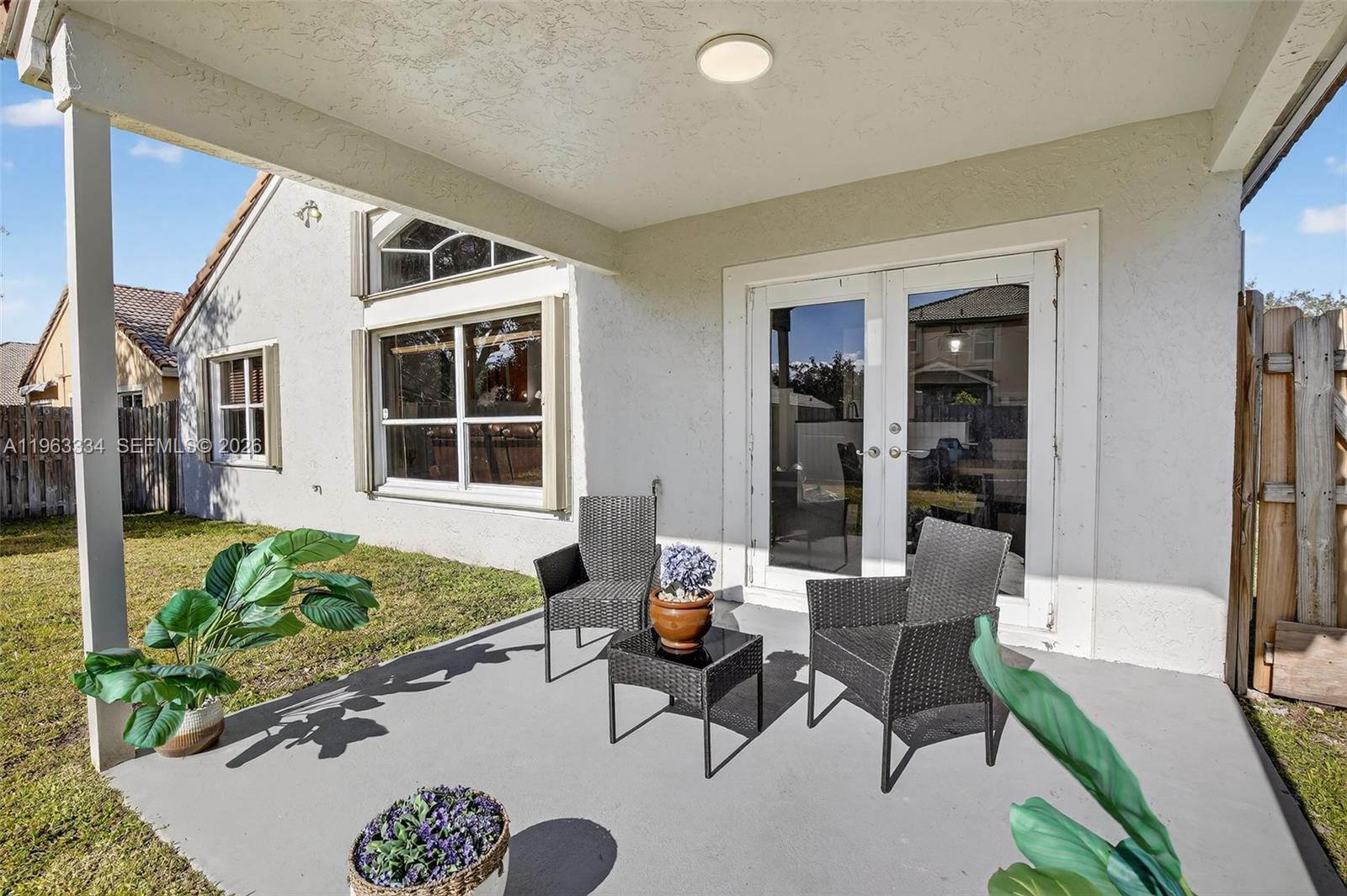 Beautifully updated Malibu model in the gated community Pembroke Falls. This bright and airy 4 bedroom, 2.5 bath home features an inviting open floor plan, vaulted ceilings, and abundant natural light. The updated eat in kitchen offers contemporary white cabinetry, granite countertops, island with serving bar, and pantry—ideal for everyday living and entertaining. The spacious primary suite includes a large walk in closet and bath with dual vanities, and a Roman soaking tub. Additional bedrooms are generously sized and versatile. Recent upgrades include fresh interior and exterior paint, luxury vinyl plank flooring, modern LED lighting, ceiling fans, and hurricane impact French doors. Enjoy outdoor living on the covered patio with fenced yard, accordion shutters, and room for a pool. Residents enjoy resort style amenities: clubhouse, heated pool and spa, fitness center, tennis, pickleball, basketball, ballroom, tot lots, four manned security entrances, and onsite management. HOA includes cable, internet, and alarm monitoring. Conveniently located near shopping, dining, major highways, and top rated Pembroke Pines schools.
