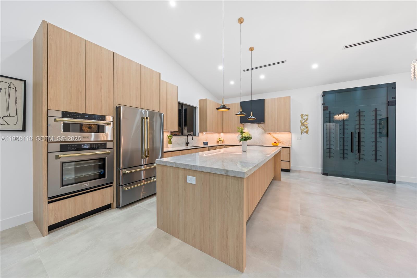 Indulge in elevated modern living within this striking 3,200-square-foot concrete masterpiece, defined by dramatic 22-foot ceilings and architectural sophistication. Thoughtfully designed for both comfort and grandeur, the residence features four generously proportioned bedrooms, three impeccably appointed bathrooms, and expansive living spaces bathed in natural light. At the heart of the home, a chef-inspired gourmet kitchen showcases bespoke wood cabinetry and exquisite Taj Mahal quartz countertops—an artful fusion of refined beauty and enduring performance. Seamlessly blending indoor and outdoor living, the private terrace reveals a sparkling pool, creating a serene retreat ideal for intimate relaxation or elegant entertaining. A secure garage enhances both convenience and peace of mind. A rare offering that embodies timeless elegance, exceptional craftsmanship, and uncompromising exclusivity.