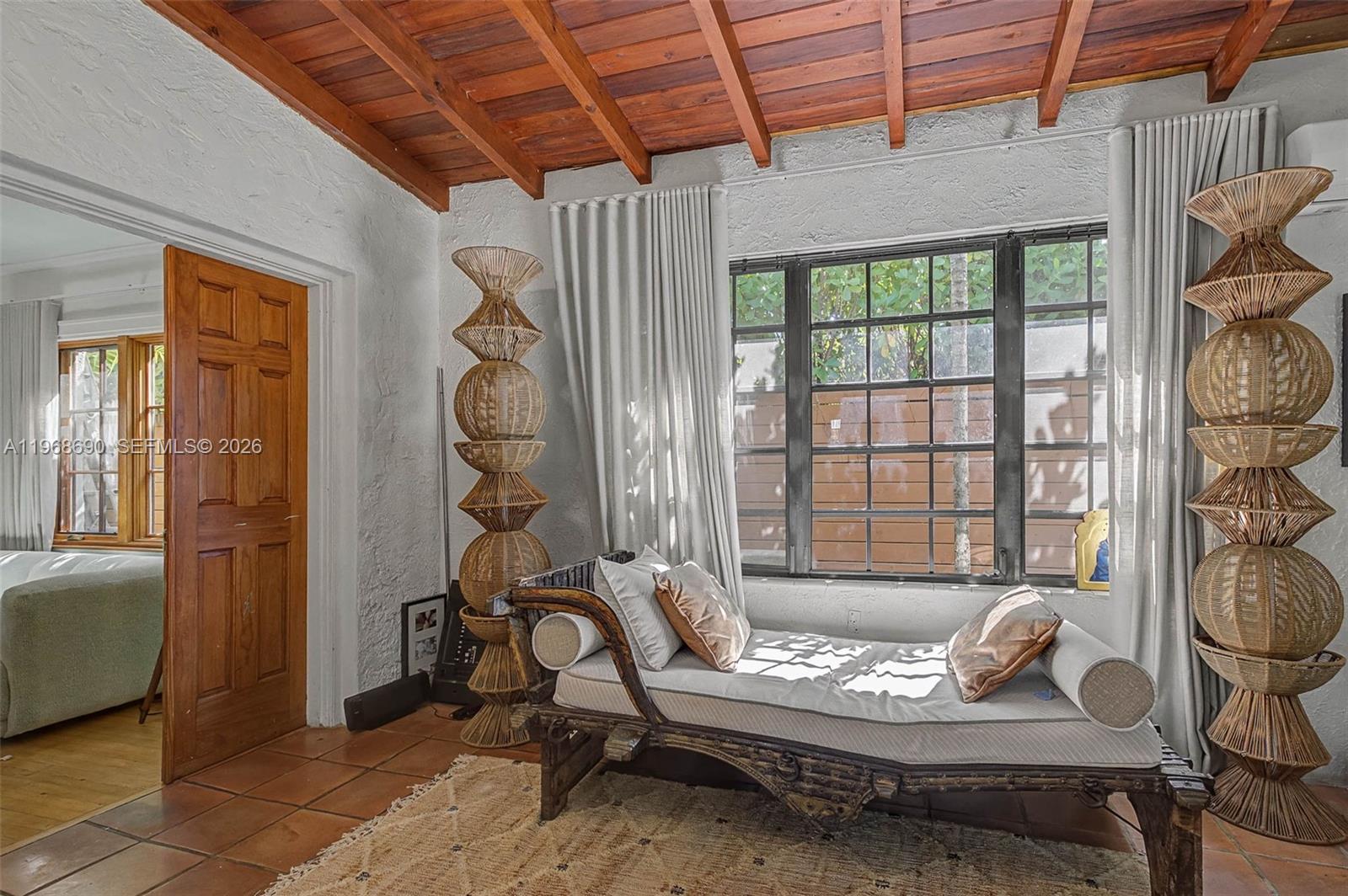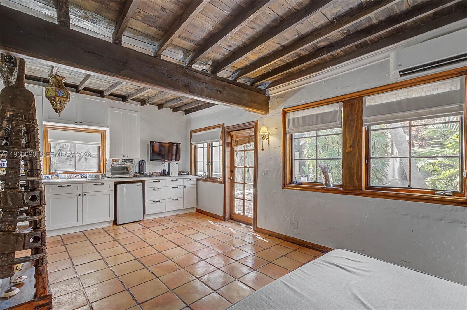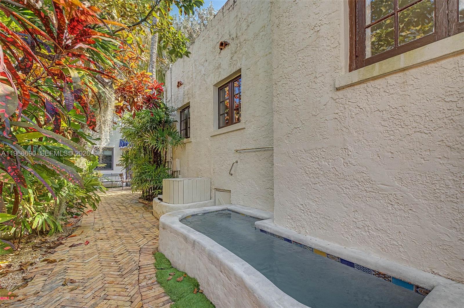 Spanish Beauty with internal courtyard filling the house with light. Nestled on non-flood zone on desirable elegant street in Northeast Coconut Grove! Opportunity to live in Miamis’s favorite residential location! 1 block from bay, walk to marinas, parks, restaurants. European flair one story easy flow with wood floors and high ceilings. Marble bathroom with tub, remodeled kitchen, PVC plumbing, garden water well, mini spa/plunge pool, cheeky hut, Argentinian/Pizza grill and fish pond in a tropical lush backyard with room to grow. Multimillion house neighborhood. 2 bed/1bath + den and mail room in main building, **plus additional 380 sq ft 1bed/1bath guest cottage/ inlaws/ maid quarters/rental unit with separate entrance, W/D and kitchenette! Grandfather in, not included in the sq.ft. An opportunity not to miss. 24 hrs previous appointment required. Only prequalified buyers.
