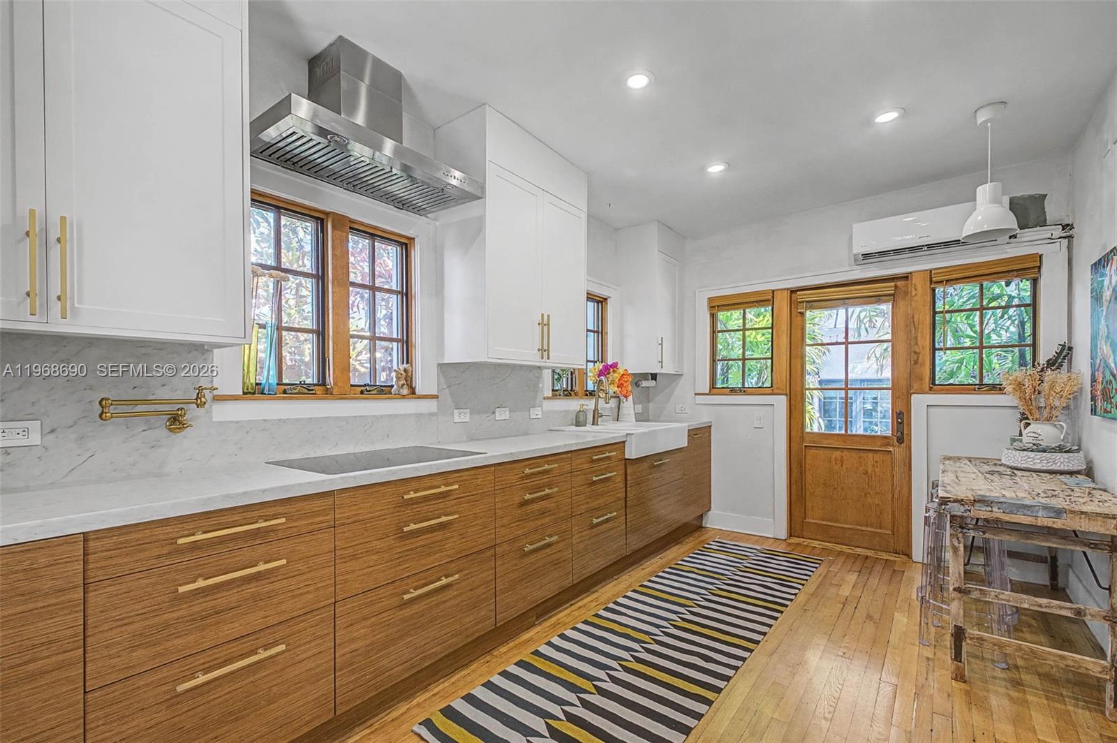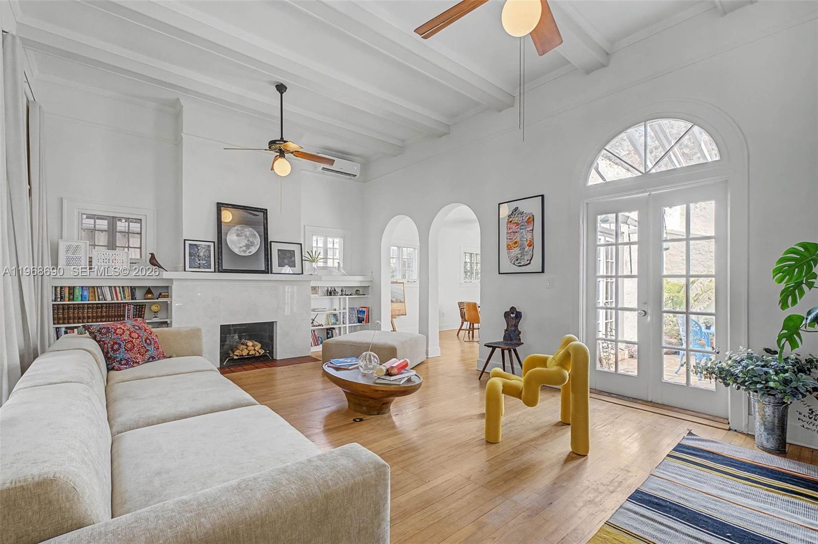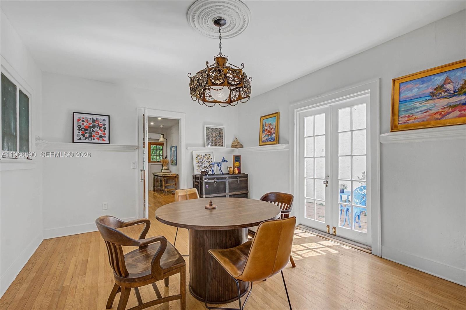 Spanish Beauty with internal courtyard filling the house with light. Nestled on non-flood zone on desirable elegant street in Northeast Coconut Grove! Opportunity to live in Miamis’s favorite residential location! 1 block from bay, walk to marinas, parks, restaurants. European flair one story easy flow with wood floors and high ceilings. Marble bathroom with tub, remodeled kitchen, PVC plumbing, garden water well, mini spa/plunge pool, cheeky hut, Argentinian/Pizza grill and fish pond in a tropical lush backyard with room to grow. Multimillion house neighborhood. 2 bed/1bath + den and mail room in main building, **plus additional 380 sq ft 1bed/1bath guest cottage/ inlaws/ maid quarters/rental unit with separate entrance, W/D and kitchenette! Grandfather in, not included in the sq.ft. An opportunity not to miss. 24 hrs previous appointment required. Only prequalified buyers.