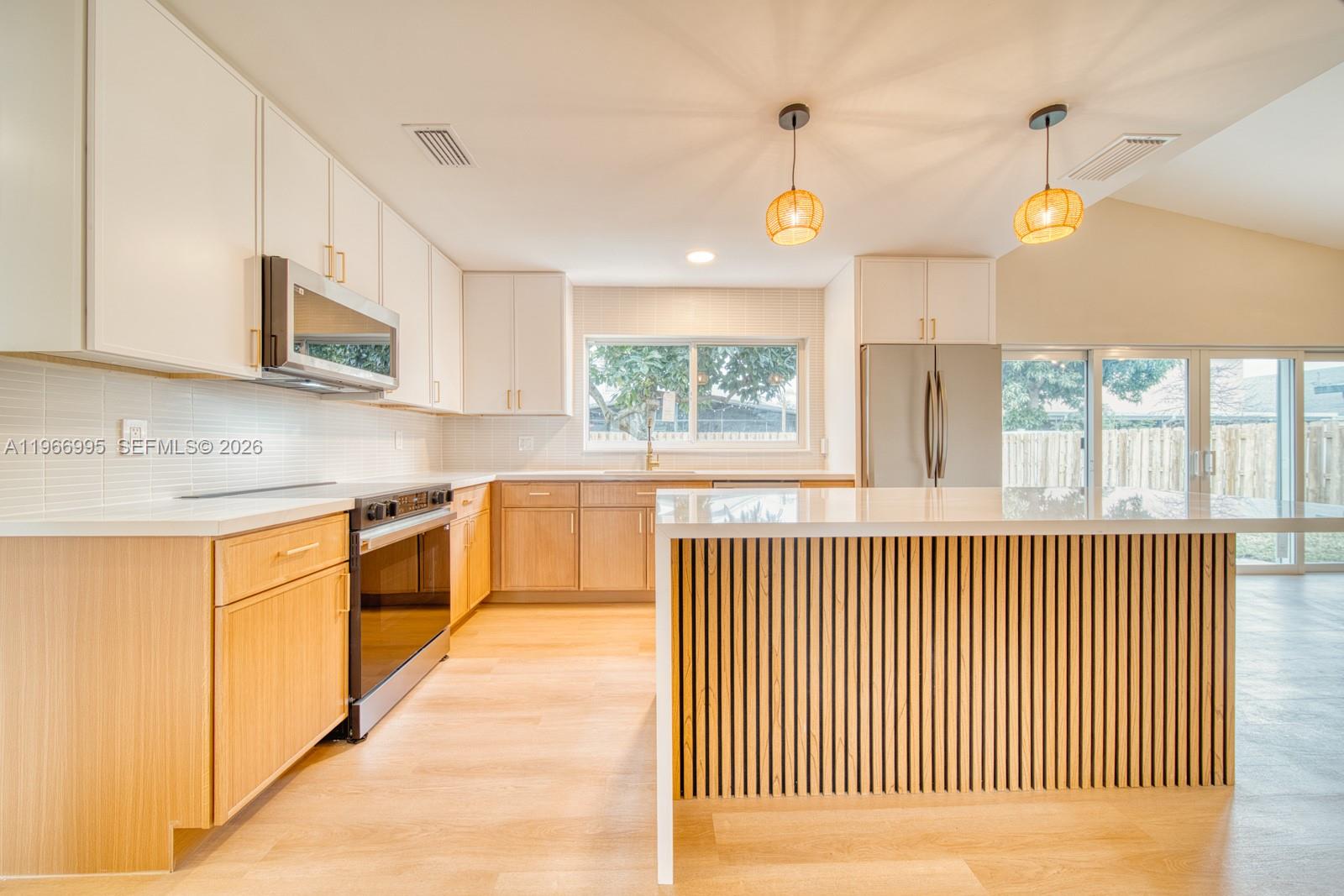 Fully renovated and move-in ready, this modern 3-bedroom, 2.5-bath home is located in one of Miramar’s most established neighborhoods, just minutes from the Turnpike and I-75. Major 2026 upgrades include a new roof, new A/C system, impact windows and doors, and a new garage door—providing peace of mind, improved energy efficiency, and potential insurance savings. The custom kitchen features Samsung appliances, quartz countertops, a waterfall island, and designer lighting throughout. Updated bathrooms and cohesive finishes give the home the feel of new construction without the wait. With all major systems updated and no projects left to do, this is a rare turnkey opportunity for buyers seeking quality, convenience, and long-term value in a prime Miramar location.