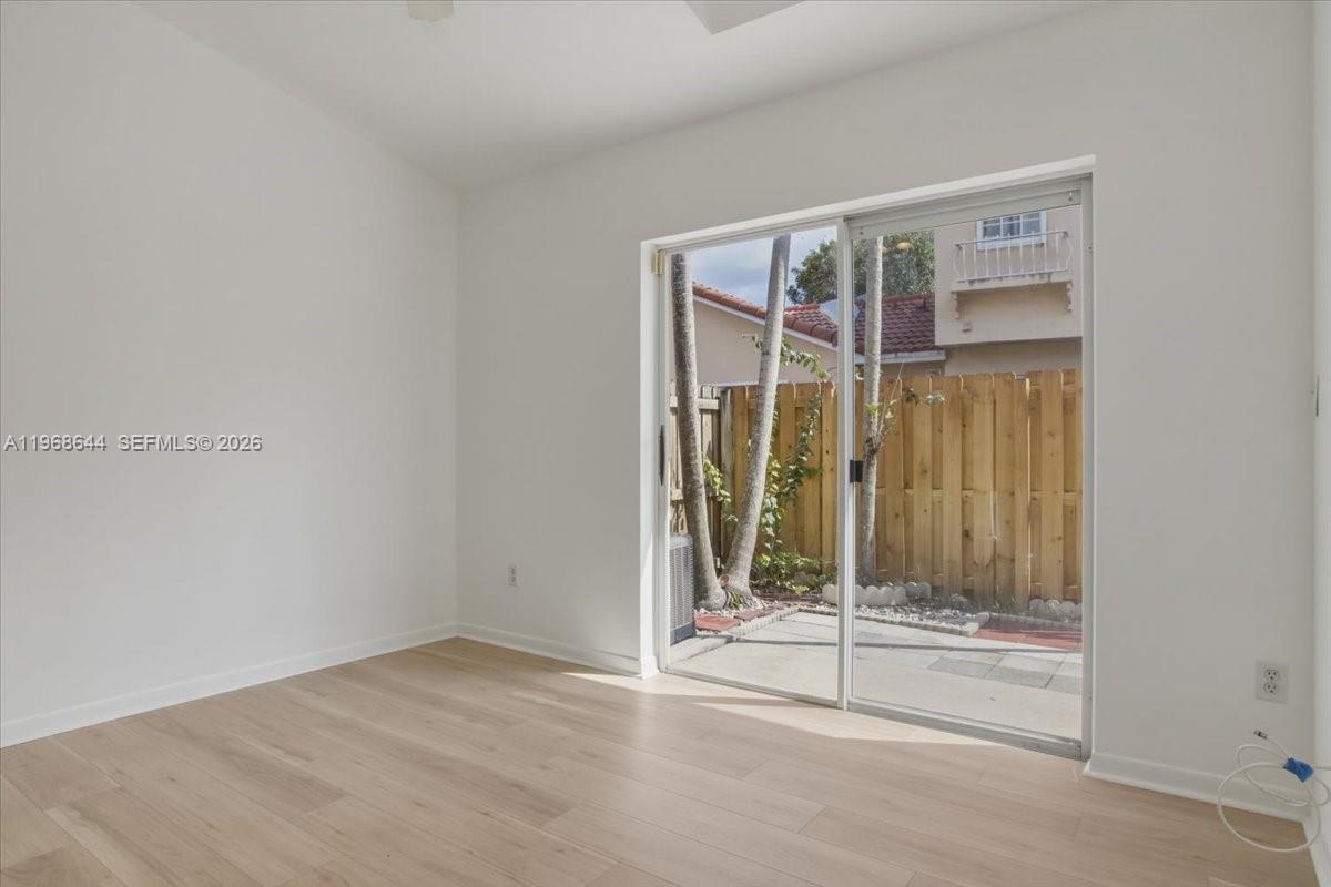 Welcome to this charming 2-bedroom, 2-bath townhouse-style home located in the gated Jasmine community within The Hammocks. Designed for comfort and ease, this residence features high ceilings that create an open, airy feel throughout the main living spaces. Both bedrooms offer generous closet space, and new flooring and fresh paint add a crisp, updated touch. Natural light pours in, enhancing the home’s spacious layout. Step outside to your own private back patio—perfect for relaxing. The unit includes a washer and dryer for added convenience and comes with one assigned parking space, plus ample guest parking for visitors. The roof was installed in 2021, offering added peace of mind. Centered around a tranquil courtyard, the community creates a welcoming neighborhood atmosphere. Ideal as a starter home or a smart addition to an investment portfolio, this property offers comfort, privacy, and convenience within a well-maintained gated community.