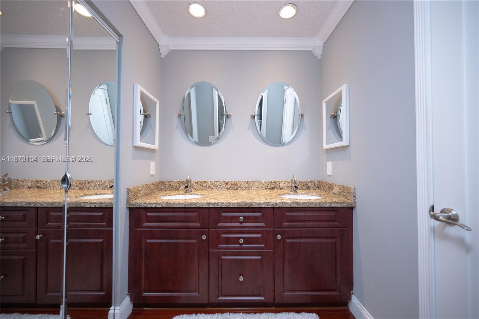 Fully remodeled 2-story 4BD/2.5BA pool home with 2-car garage, offering soaring high ceilings and elegant 32” x 32” porcelain tile flooring throughout the main living areas. The modern metal and wood staircase creates a striking focal point, while the second floor showcases stunning Bella Wood Brazilian Cherry hardwood flooring. Home features full impact windows, two impact sliding glass doors, and a contemporary impact front entry door for added security and energy efficiency. The family room includes built-in ceiling surround sound, perfect for entertaining. Enjoy a private backyard oasis with a saltwater pool system, energy-efficient variable speed Pentair pump, custom BBQ island with built-in electric refrigerator, two remote-controlled awnings with auto-retract rain sensors, and exterior sound system. Excellent location close to everything. Truly turnkey and move-in ready, just bring your clothes and start enjoying from day one! Watch the full property tour on YouTube, the link is included in this listing. Showings by appointment only