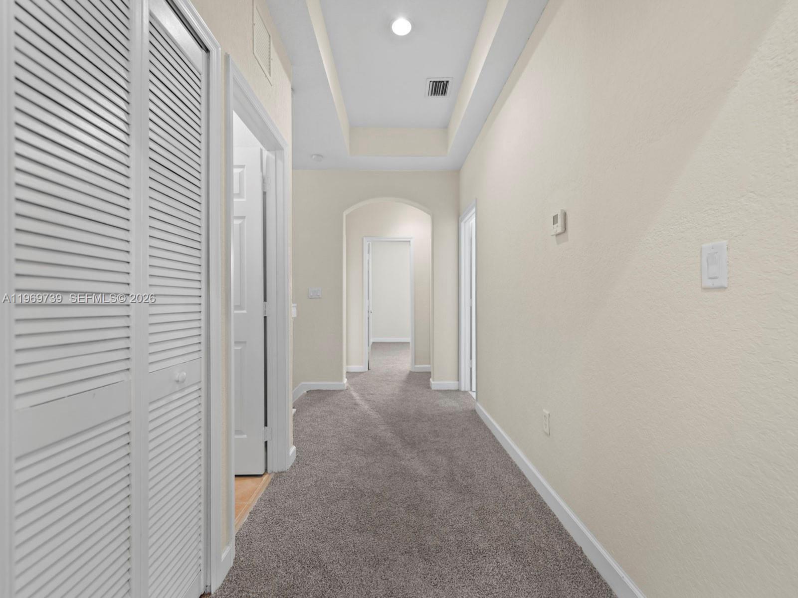 Welcome home to this spacious, move-in-ready CORNER townhouse featuring 4 bedrooms, 3 bathrooms, and an attached single-car garage. Boasting excellent curb appeal with a charming brick paver driveway and Mediterranean-inspired architectural details, this home is bathed in abundant natural light. Step inside to discover a bright, open-concept main floor tailored with easy-care tile flooring and elegant arched accents. The kitchen features warm wood cabinetry, sleek black appliances, a convenient pantry, and a breakfast bar that flows seamlessly into the designated dining and living areas. Double sliding glass doors open directly to your private, fully fenced backyard—perfect for weekend barbecues, relaxing, or letting pets roam. With its freshly painted neutral palette and inviting layout, this fantastic corner unit is a true blank canvas waiting for your personal touch. Low HOA fees include cable and internet - no approvals required.