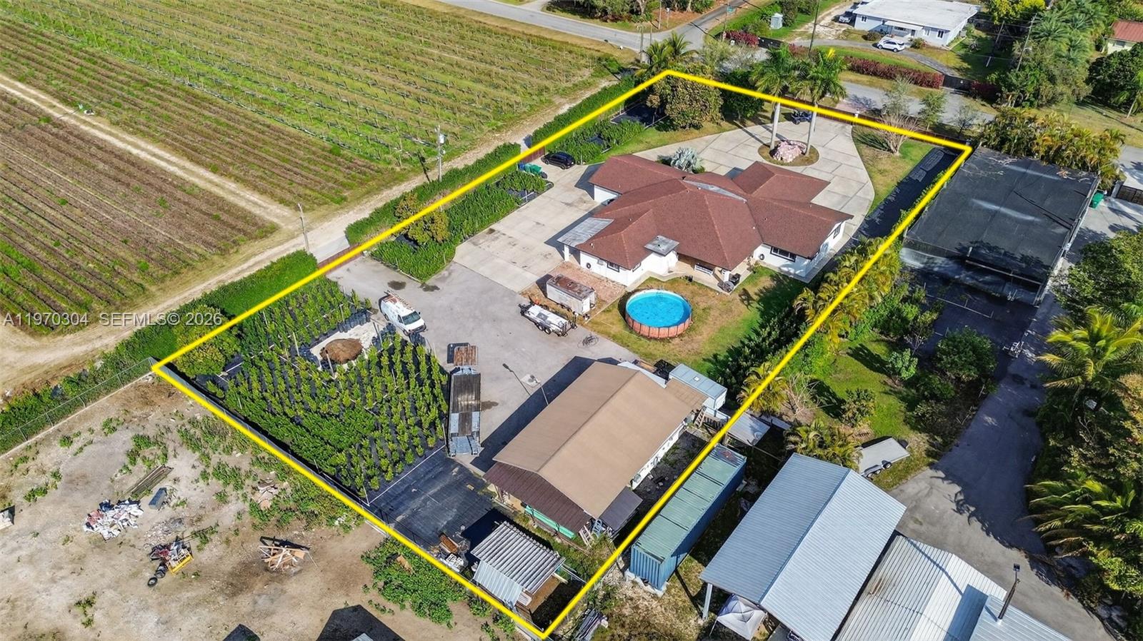 Amazing opportunity to own a house within the agricultural Suburbs, this home features 3 bed/2 bath at the main house , and 1 bed /1 bath casita or in law quarters perfect for extended family or to rent for extra income.The driveway is generously over sized circular with custom porte-cachere done 2 years ago.Outdoor oasis equipped with samsung appliances ,full kitchen ,wood cabinetry,granite countertoops in both kitchens and baths.Also half a bathroom outside.Polished marble floors throughout the interior.Outdoor living at its finest with custom built kitchen.Yellow pine tongue/groove ceilings with recessed lighting and travertine floors.All Impact and doors,aqua kleen water softnet/filter system. Wood composite fence ,fruit trees space for boat/RV.No HOA