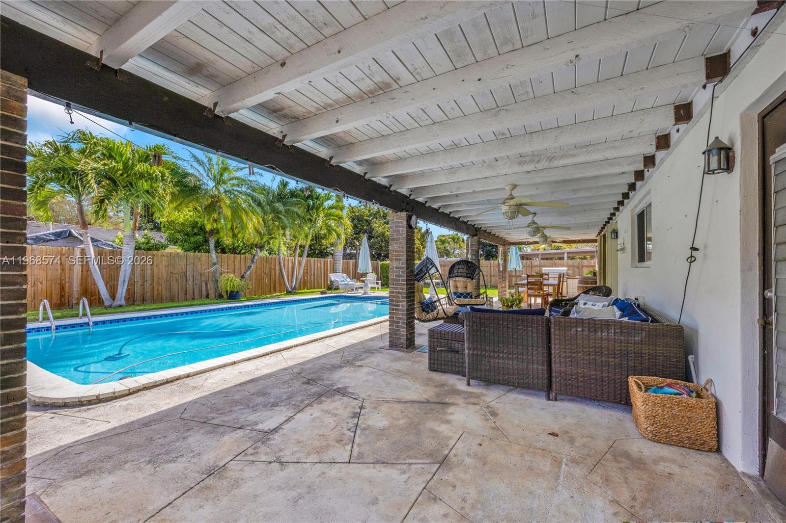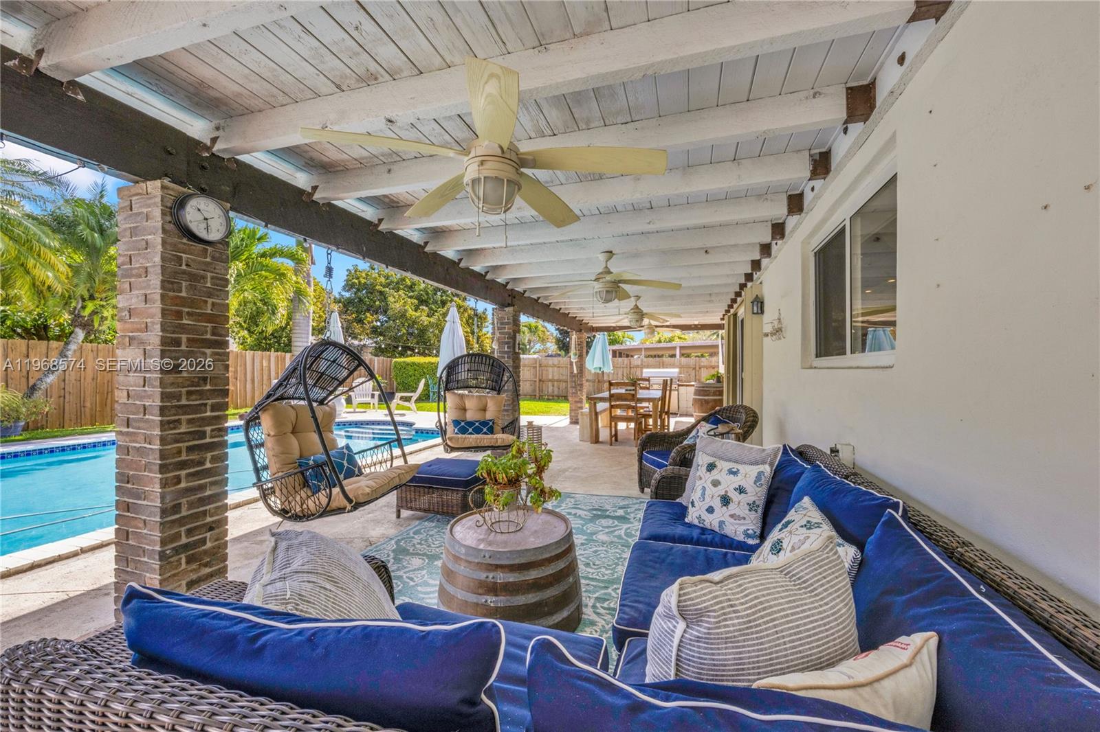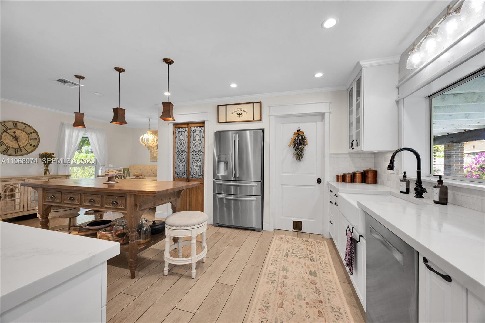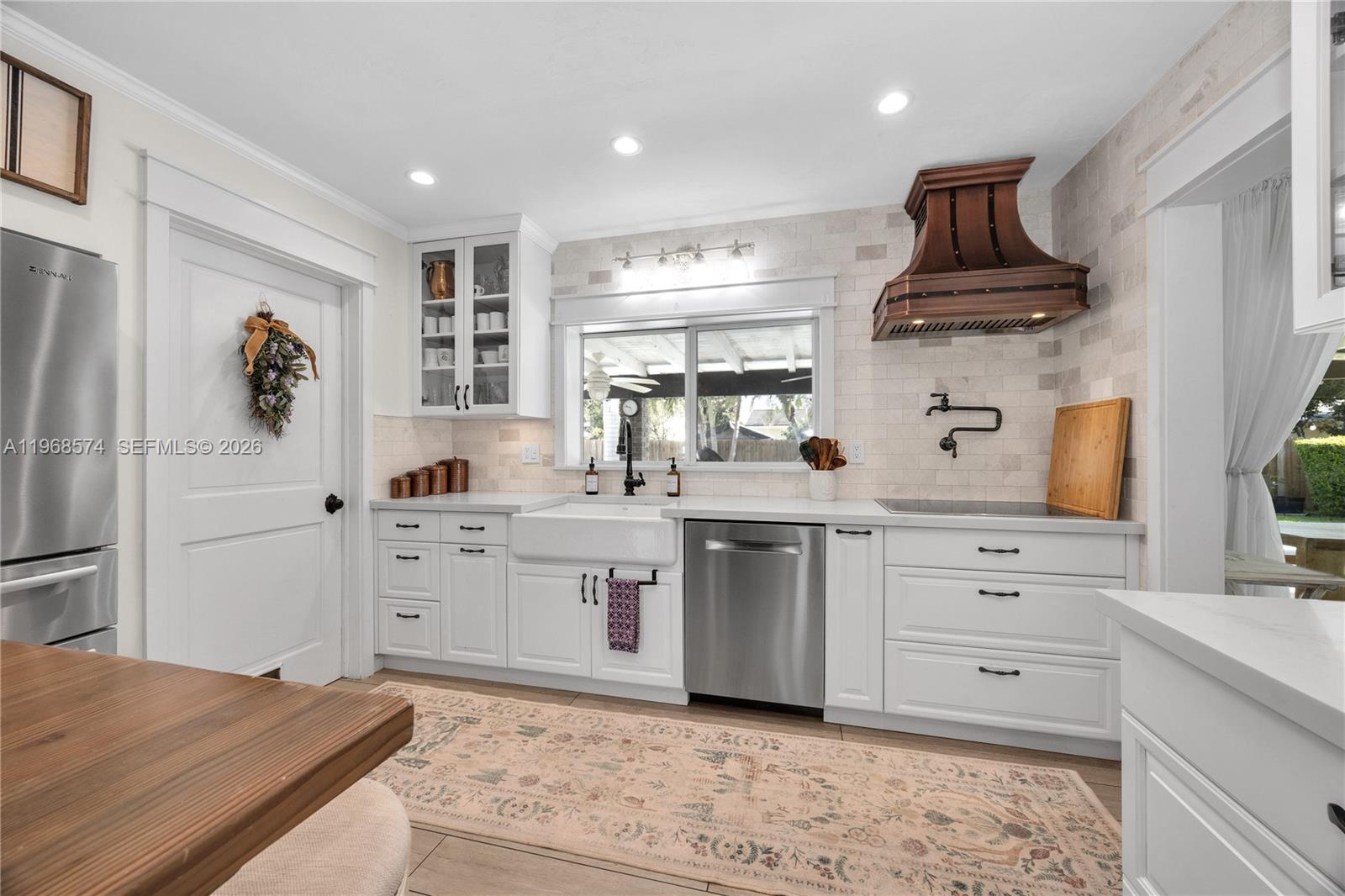 Beautifully remodeled and move-in ready, this spacious 4 bedroom, 2 bath home offers the perfect blend of style, comfort, and modern upgrades. Located on a quiet cul-de-sac street, the property provides added privacy with minimal traffic and features room on the side for a boat. Designed with a bright, open layout, the home flows effortlessly from living to dining to kitchen, creating an ideal setting for both everyday living and entertaining. The stunning kitchen was completely redone in 2023 and showcases all wood custom cabinets, elegant quartz countertops, a marble backsplash, and a custom butcher block island. High-end finishes include a Kohler farmhouse sink, Kohler faucet and pot filler, Monogram cooktop, and a Monogram French door oven featuring smart technology with air fry and convection capabilities. A Bosch dishwasher and spacious walk-in pantry add convenience and functionality. Additional upgrades include full impact windows and doors for peace of mind and energy efficiency, along with a roof that is less than 10 years old. Every detail has been thoughtfully updated to provide modern comfort with timeless appeal. Step outside to a large backyard designed for relaxation and entertaining, complete with a sparkling pool and plenty of room for gatherings or quiet evenings at home. This home is truly turn-key & ready for its next owner to enjoy.
