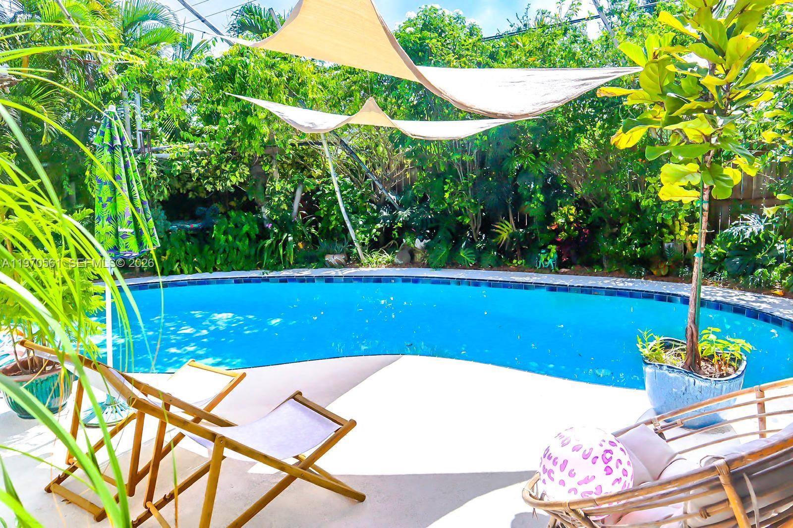 COMPLETELY REMODELED POOL HOME WITH LUXURIOUS TROPICAL BACKYARD OASIS AWAITS!! ALL IMPACT WINDOWS AND DOORS THROUGHOUT, NEW ROOF 2024, NEW A/C 2025. NO HOA!! Located in a quiet neighborhood minutes from beaches, restaurants and shopping. Saturnian marble floors are amongst the upgraded details of this home. Exquisitely remodeled kitchen with eat in counter. Top of the line upgrades, like double thick quartz and stainless steel appliances. Bright corner breakfast nook with views of the pool and lush exotic backyard. Professional landscape includes mosquito misting system and outdoor enclosed shower sink and 8 gallon hot water heater. Property is a legal 2/1 but can easily be converted to a 3/2 PROPERTY MUCH BIGGER THAN TAX ROLL. SELLER MOTIVATED COME SEE THIS BEAUTY AND MAKE AN OFFER. (Seller prefers offers non contingent to appraisal.) EASY TO SHOW/VACANT CALL LISTING AGENT