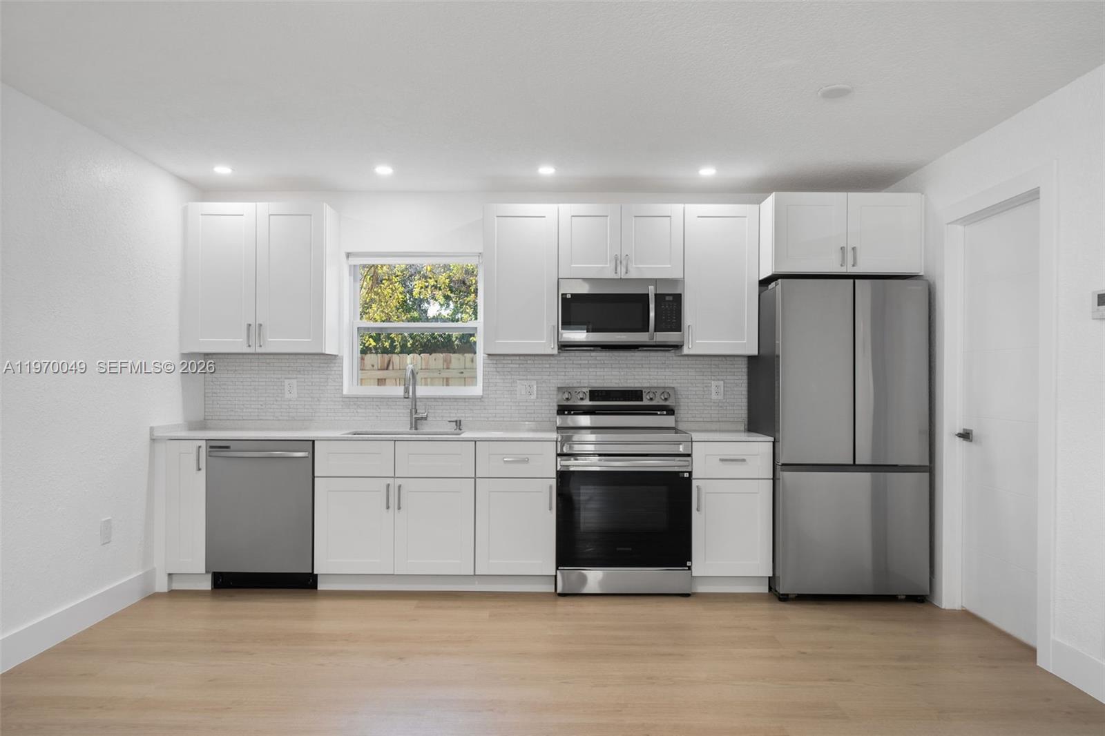 Beautifully renovated single-family home with modern exterior and brand-new landscaping in the heart of Hollywood. This 3-bedroom, 2-bath residence offers updated kitchen featuring new cabinetry, quartz countertops, and stainless-steel appliances. Completely renovated bathrooms with new fixtures and finishes, outside storage. Brand new roof (2025) and recently updated A/C. Situated on a 4,726 sq ft lot with driveway parking and backyard space to add a pool and outdoor BBQ area. Built in 2002. No HOA. Located near major highways, shopping, dining, and minutes from beaches and downtown Hollywood.