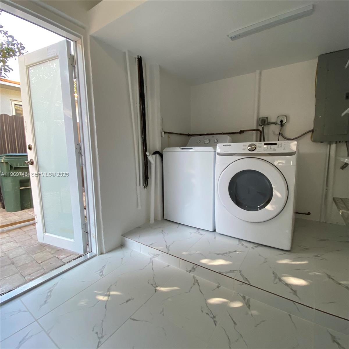 Tucked away on a quiet street in Biscayne Park, this charming 1949 home blends timeless character with meaningful upgrades. Mature trees and nearly one acre of open green space across the street create a peaceful setting that feels removed from the city yet remains close to everything Miami has to offer. Recent improvements include new front stucco, freshly painted outside, and a permitted septic tank and drain field for added peace of mind. The kitchen features new appliances and sink, while the bathroom has been updated with a new vanity and modern fixtures. Original wood floors add warmth and authenticity, complemented by new flooring in the laundry room. The property also features sprinkler systems on the front and back, as well as all impact windows and doors. The permitted converted attached garage offers versatile living space—ideal as a home office, creative studio, den, guest room, or third bedroom —and provides room for additional bathrooms, offering excellent potential for future expansion. Approved blueprints are available. The backyard offers space to relax or reimagine, complete with a wooden deck, storage shed, and ample room to build a new pool. A wide driveway provides generous parking, completing this inviting property. Conveniently located minutes from Downtown Miami, beaches, major highways, shopping, and dining—enjoy privacy, flexibility, and opportunity in one of Miami’s best-kept secrets and most charming residential enclaves.