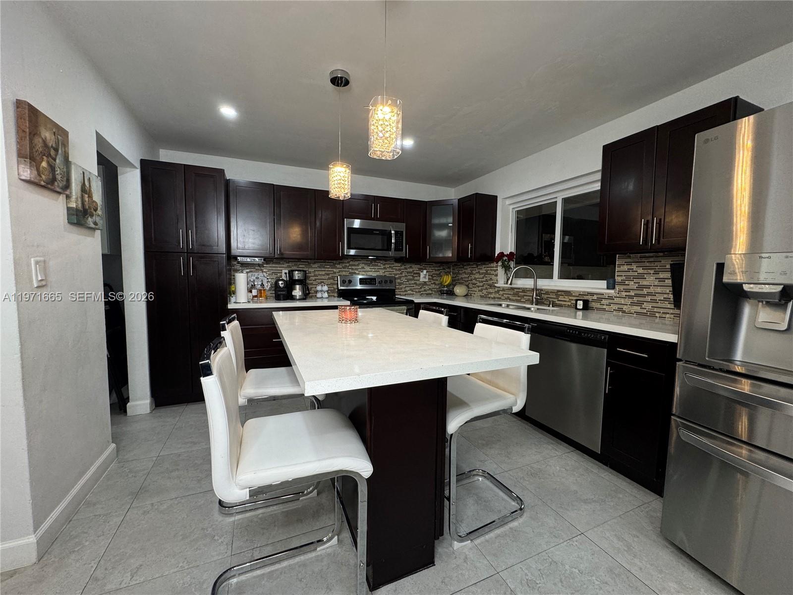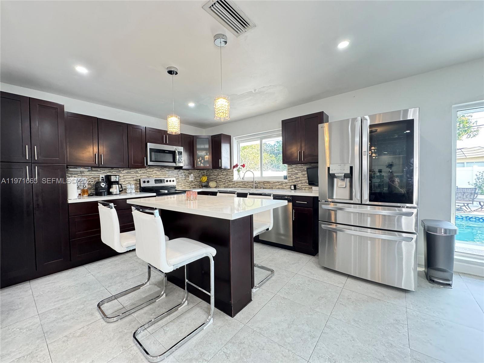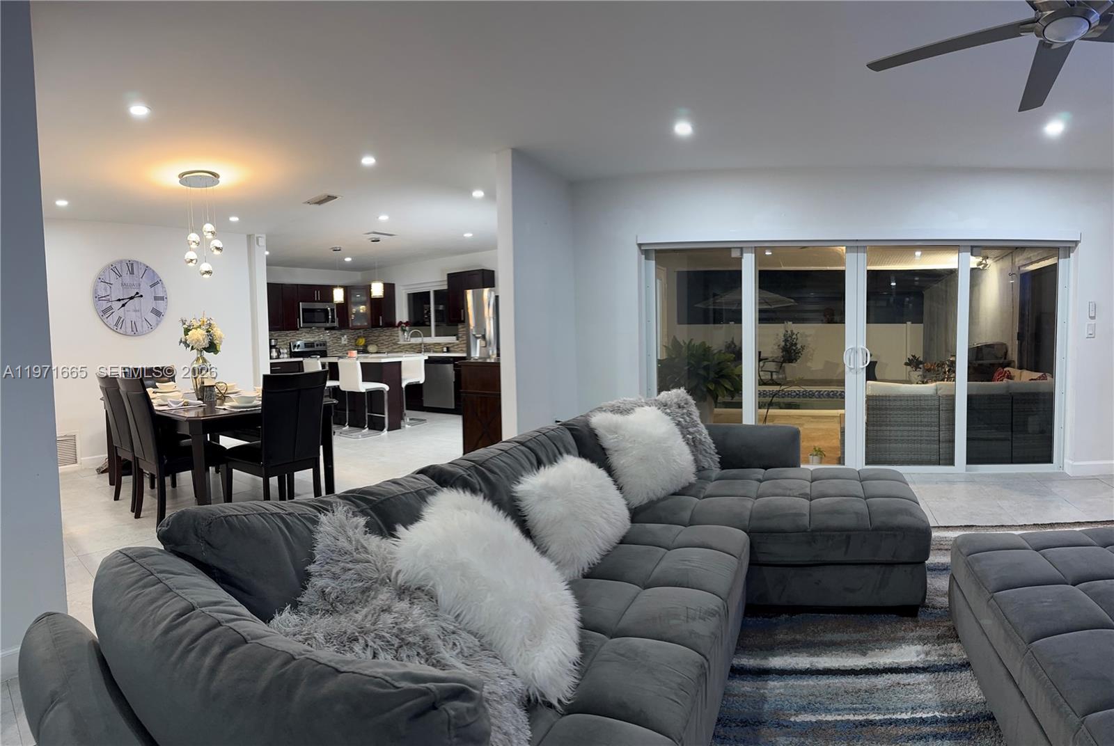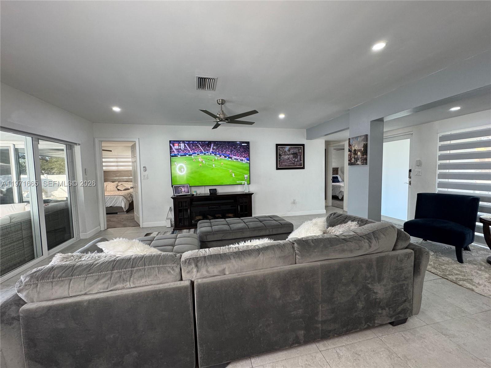 Beautiful 4 Bedroom / 2 Bathroom Fully Remodeled Home Stunning, move-in-ready residence featuring a new roof, new A/C, renovated kitchen, and fully remodeled bathrooms. The interior offers expansive glass walls that provide a breathtaking view of the pool and newly finished stone backyard, creating the perfect indoor–outdoor lifestyle. The home showcases upgraded appliances (refrigerator not included), modern ceramic tile flooring throughout the main living areas, and carpet in all bedrooms. The spacious primary suite includes a walk-in closet and a beautifully updated master bathroom. Enhanced lighting throughout the home adds a bright and elegant touch. An additional versatile room can be used as an office, guest room, studio, or efficiency—adding exceptional flexibility and value. Enjoy a double garage plus parking for up to eight additional vehicles, along with a large pool and terrace ideal for entertaining. This property offers comfort, functionality, and style in one exceptional package. Just 25–35 minutes to Miami Beach or Fort Lauderdale Beach, 20–25 minutes to Fort Lauderdale-Hollywood International Airport, 30–40 minutes to Miami International Airport, only 10–12 minutes to Pembroke Lakes Mall, and 15–20 minutes to Sawgrass Mills — everything you need within easy reach.
