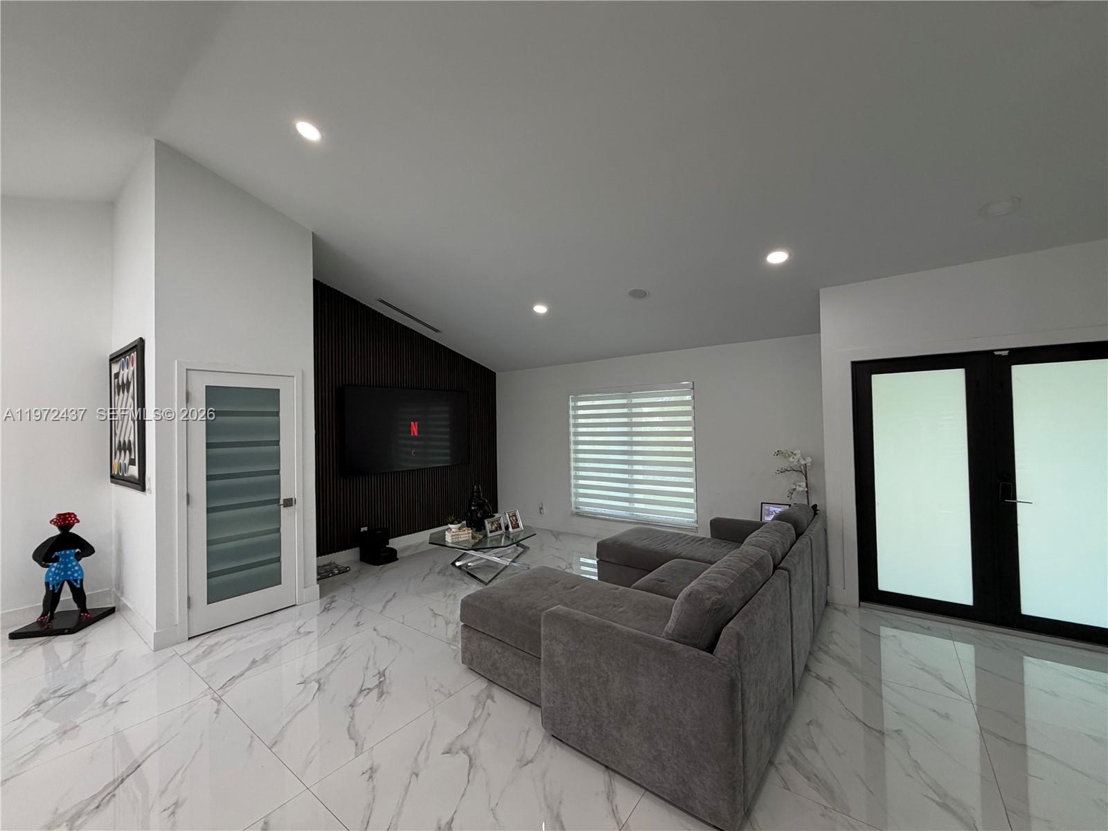Welcome to one of the most comprehensively renovated luxury residence and resort-level amenities rarely found in this market. Recently completed and meticulously upgraded with timeless finishes and long-term value enhancements. Every detail was curated to create a clean, expansive and sophisticated living environment that meets the expectations of high-end buyers. This private acre home fully renovated to deliver a true luxury, move-in-ready experience. Every detail of this residence was thoughtfully transformed approximately one year ago, blending timeless elegance with modern sophistication. Calacatta flooring, a stunning designer kitchen with an oversized island, and spa-inspired bathrooms featuring Calacatta vanities and frameless glass. Motorized blinds, whole-house audio, impact windows, and new A/C ductwork enhance both comfort and convenience. Outdoors, the property lives like a private resort. Enjoy a beautiful pool with new equipment, sauna, outdoor shower, tree house, and a remodeled terrace ideal for entertaining. The professionally tennis court also adaptable for basketball, soccer and multi-sport use, makes this home truly exceptional. Resort-style landscaping with Mature privacy hedges surrounds the fully fenced acre, creating a serene and exclusive setting. Lifetime metal roof, new flat roof, and premium upgrades throughout, this is your opportunity to own one of the most comprehensively renovated homes in the area. Luxury. Privacy. Lifestyle. All on one acre.