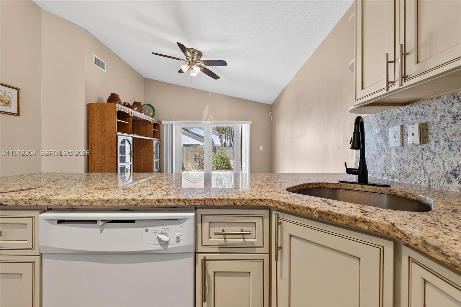 Stunning & Rare 3 bedroom, 2 bathroom Single Family home without HOA, designed for comfort, entertaining & true South Florida living. Inside, you’ll find high ceilings with tons of natural light; a large/open chef's kitchen featuring top of the line appliances, granite counter tops that matches the beautiful backsplash & custom made tall cabinets. The kitchen flows seamlessly into the family room, creating an open & functional layout ideal for gatherings. NEW Vinyl flooring throughout. The bedrooms are generously sized & the home features bright, airy spaces along with a convenient patio perfect for relaxing or entertaining outdoors. Master bedroom features two spacious closets as well as a large bathroom. ACCORDION SHUTTERS on all windows. NEW A/C. One car garage features a window. MASSIVE DRIVEWAY will accommodate multiple vehicles. This property offers the perfect balance of indoor comfort & outdoor lifestyle. It's a MUST SEE! Owners have really taken care of this one. Call for a private tour today!