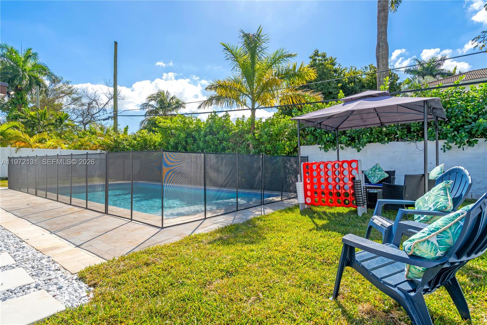 Fully remodeled 5-bedroom, 3-bathroom home ideally located in Miami. Between Miami Shores, Biscayne Park, and North Miami Beach. This spacious residence features a versatile layout including two primary suites, a secondary private master and a main primary bedroom complete with a spa-like bathroom offering a spacious shower and soaking tub. The open-concept kitchen is designed for modern living, showcasing a large quartz island, sleek finishes, and seamless flow into the main living and dining areas. Elegant porcelain tile flooring runs throughout the home, enhancing its contemporary feel. Major upgrades include impact windows, new PVC plumbing, updated electrical, a durable metal roof, and two separate HVAC units for optimal comfort and efficiency. Step outside to a generously sized backyard featuring a brand-new construction pool — perfect for entertaining or relaxing in your own private oasis. The spacious driveway provides ample parking. Prime location within walking distance to Barry University and close to Miami Country Day School. Just 15 minutes from the beach and vibrant Downtown Miami. Move-in ready and perfect for large families or short-term rental investors. Furniture included. Schedule your showing today!