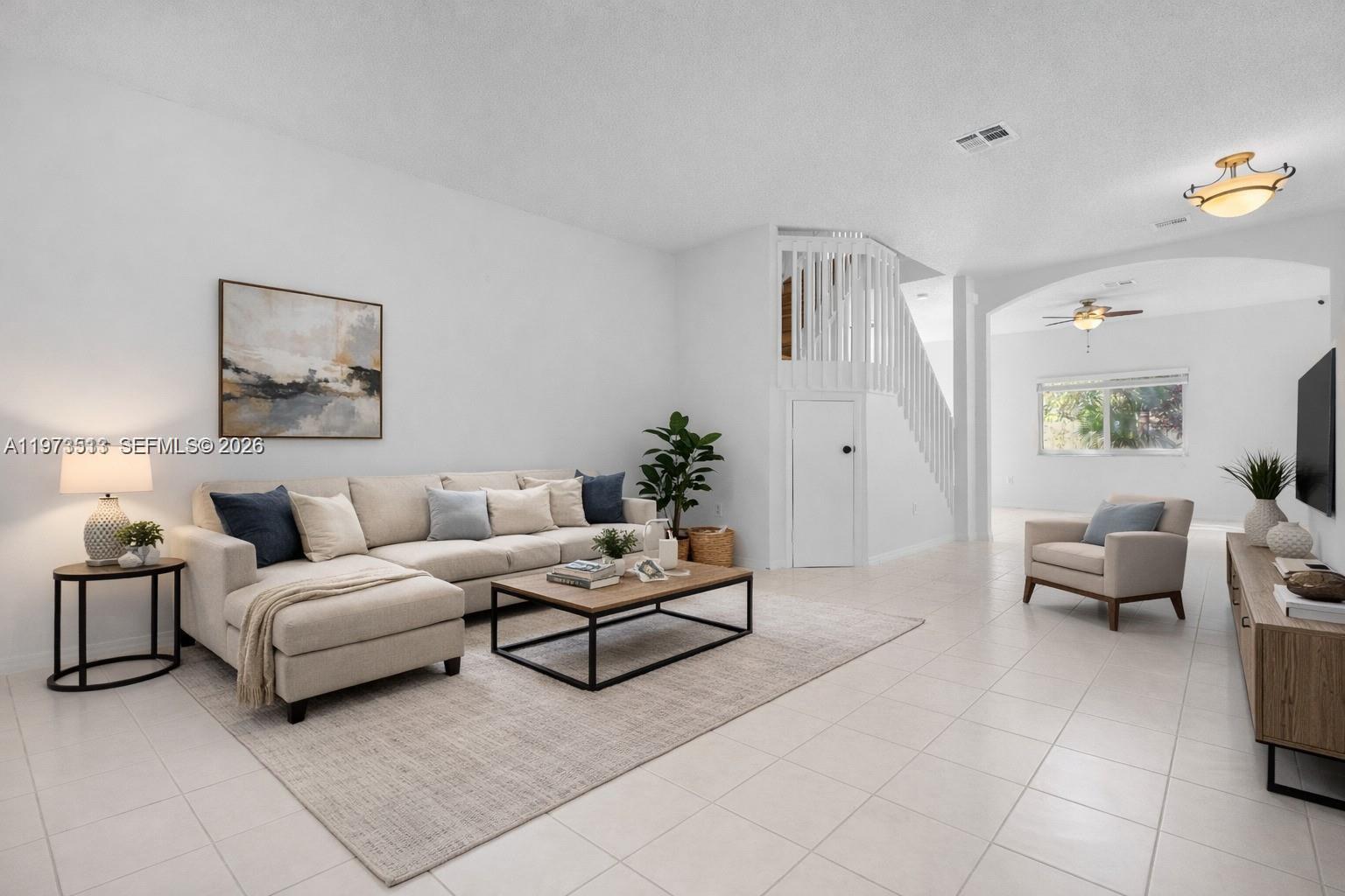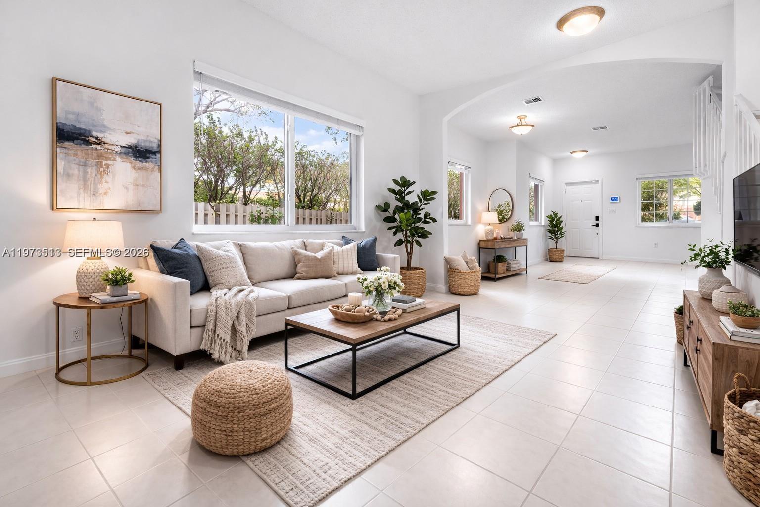 Welcome to Avalon, a gated community in the heart of Miramar. Live, Work, Play — it’s all right here! This beautifully updated corner-unit 4-bedroom, 2.5-bath townhome offers 1,666 sq ft of move-in ready living space with major upgrades already completed. Enjoy peace of mind with a NEW A/C (2024), NEW impact windows (2024), NEW stainless steel appliances (June 2025), and a roof replaced in 2017 by the HOA. The kitchen shines with brand-new stainless steel appliances and functional layout. Tile floors run throughout the main living areas, with wood flooring upstairs for warmth and comfort. A bright sunroom and versatile loft provide flexible space for a home office, playroom, or additional lounge area. Includes a 1-car garage. Avalon residents enjoy resort-style amenities including 3 community pools, playground, and scenic fishing ponds. Low HOA of $296/month covers roof maintenance, exterior paint, and pressure washing. A rare corner unit with major upgrades in a prime Miramar location — ready for its next owner.