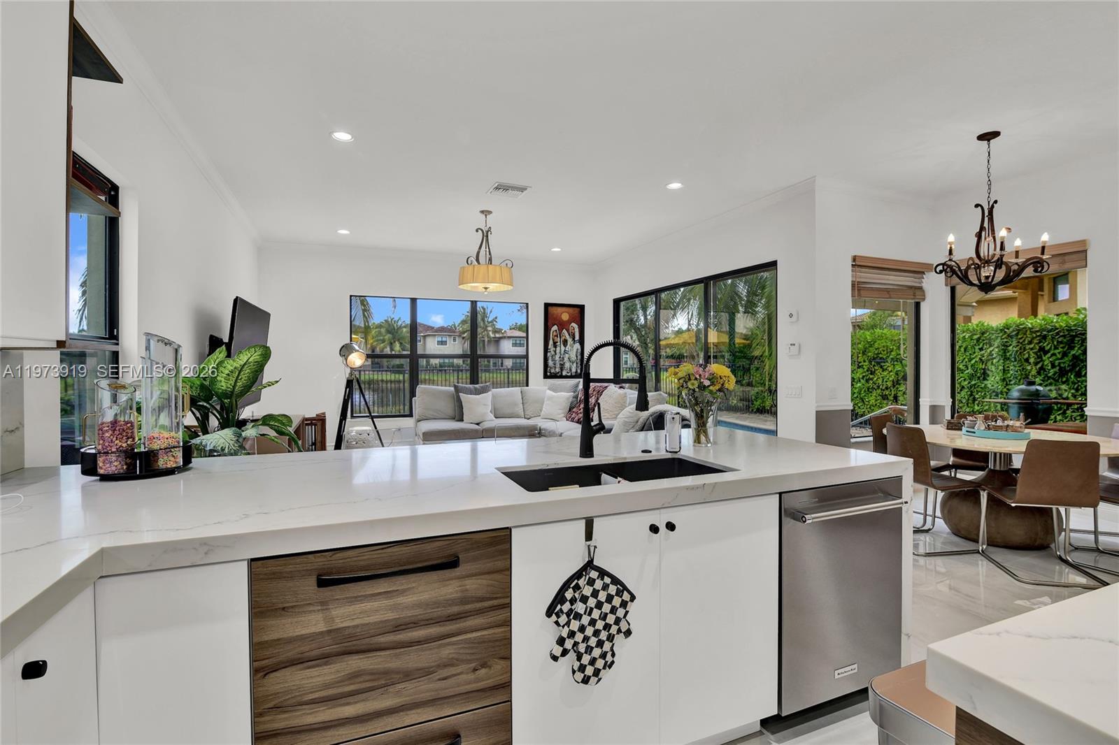 Stunning lakefront estate featuring 6 bedrooms, with one beautifully converted into a high-end custom office, perfect for working from home in style. This exceptional property offers an oversized heated pool overlooking a large lake with a serene fountain view, creating a true resort-style setting. The expansive, fully fenced backyard provides privacy and ample space for entertaining and outdoor enjoyment. The home boasts a remodeled gourmet kitchen with quality appliances, including two dishwashers for added convenience, ideal for hosting and large gatherings. The luxurious primary suite features a completely renovated master bathroom with modern finishes and elegant details. Enjoy Florida living at its finest with a fully equipped summer kitchen and spacious barbecue area, perfect for entertaining family and friends year-round. Bright living areas, generous bedroom sizes, and thoughtful upgrades throughout make this home move-in ready. A rare opportunity to own a beautifully upgraded lakefront property combining comfort, functionality, and upscale outdoor living. Residents enjoy resort-style community amenities including a clubhouse with restaurant, fitness center, splash area for kids, tennis courts, and pickleball courts. A rare opportunity to own a beautifully upgraded lakefront home combining comfort, elegance, and lifestyle. subject to error omission and changes without notice.