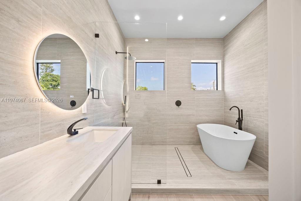 1135 & 1137 NE 11th Ave, Fort Lauderdale, FL – Lake Ridge New construction residence offering 4 bedrooms and 3.5 bathrooms in the desirable Lake Ridge neighborhood. Modern open-concept floor plan with floor-to-ceiling windows providing abundant natural light throughout. Contemporary glass kitchen design in white and light wood finishes, featuring panel-ready JennAir appliances and a spacious island overlooking the main living areas. Built-out closets provide functional storage solutions throughout the home. Primary suite includes a spa-style bathroom with oversized shower and custom closet build-outs. Dedicated laundry room with utility sink. Interior features include integrated ceiling speakers throughout the home and pre-wired security camera system. Private backyard with outdoor BBQ area and a 2-car garage. Modern design, quality finishes, and exceptional natural light.