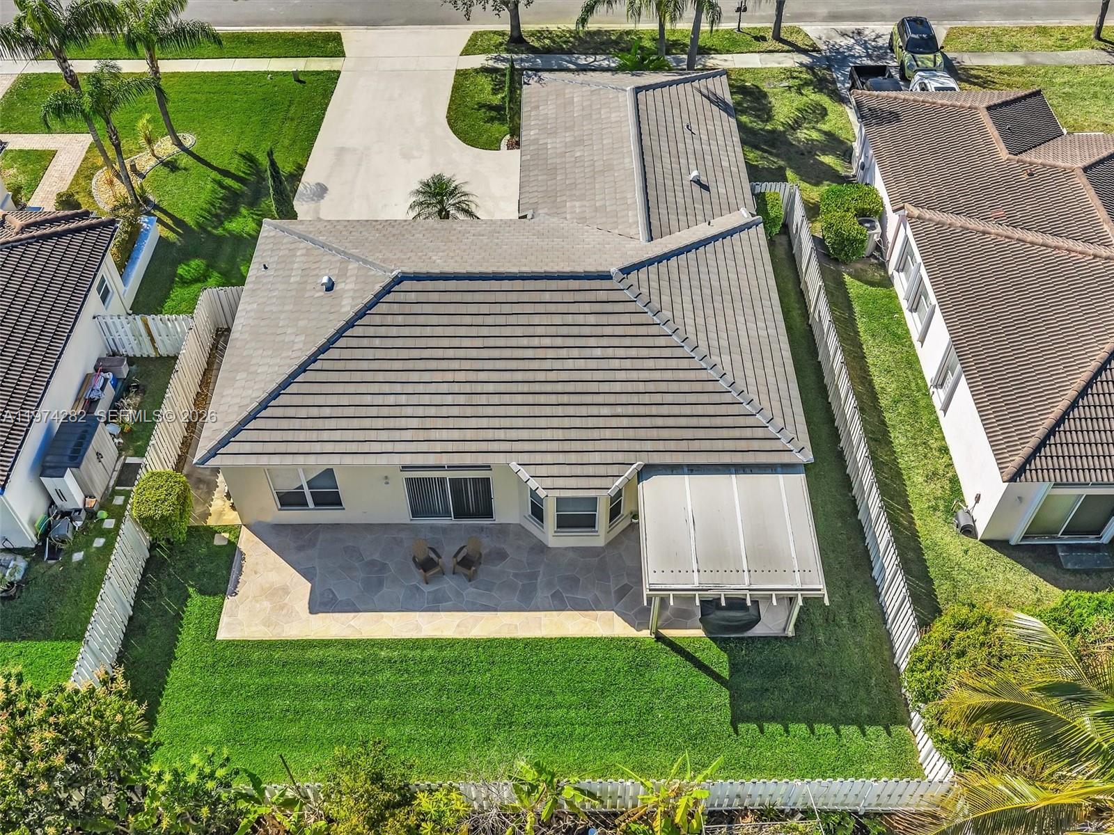 Beautifully maintained single-story home in the guard-gated community of Keystone Lake in Pembroke Pines. This bright and spacious 3-bedroom, 2-bath residence features an open, airy layout filled with natural light. The updated kitchen flows into the family room, while the primary suite offers a walk-in closet, dual vanities, and a relaxing Roman tub. Enjoy outdoor living in the privacy-fenced backyard with an oversized covered patio and room for a pool. Major upgrades include a new roof (2024) and new HVAC (2025). The two-car garage with a new door and automatic opener is air-conditioned, has tile flooring and a window, making it perfect for additional flexible space, such as an office or home gym. Keystone Lake surrounds a tranquil 143-acre lake with guard-gated security. The sale includes the outdoor patio set, the grill, the decorative fireplace, and the deep freezer. Low monthly maintenance includes Comcast internet and cable, a guard-gated entrance, management, common area maintenance, and a playground. This home is move-in ready and impeccably maintained!