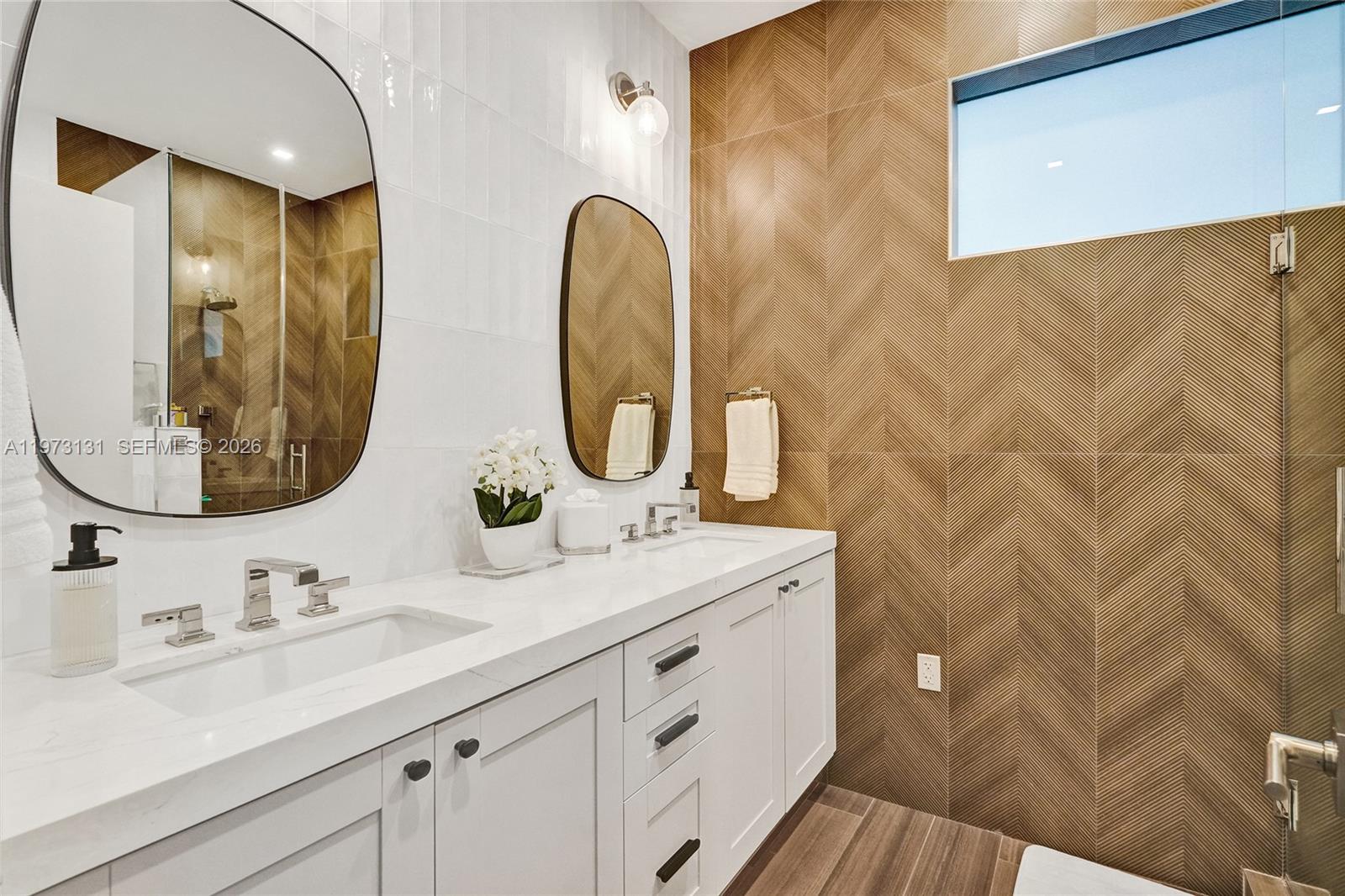Resort-style privacy meets modern scale in this fully gutted and completely remodeled 5-bedroom plus maid’s quarters estate spanning 4,555 sq ft in a gated Miami community. Rebuilt from the inside out with all-new wiring, plumbing, new roof, and hurricane-impact windows and doors, the home offers the feel of new construction with modern infrastructure. Soaring ceilings, expansive windows, and clean architectural lines fill the interiors with natural light, while porcelain flooring runs throughout. The chef’s kitchen features premium Cove, Wolf, and Sub-Zero appliances, custom cabinetry, and generous counter space flowing seamlessly into formal and informal living areas. Each bedroom offers privacy and generous proportions with spa-inspired bathrooms, and the maid’s quarters includes its own full bath. Smart home technology controls blinds, lighting, cameras, Wi-Fi, and alarm system. The resort-style backyard includes a private pool, covered patio, and summer kitchen with ice maker, perfect for entertaining. Additional highlights include a wine fridge in the primary suite, a full-house 48 kW Kohler generator, and a high-speed EV charger. Ideally located near Aventura Mall, dining, golf courses, major highways, and waterfront destinations.