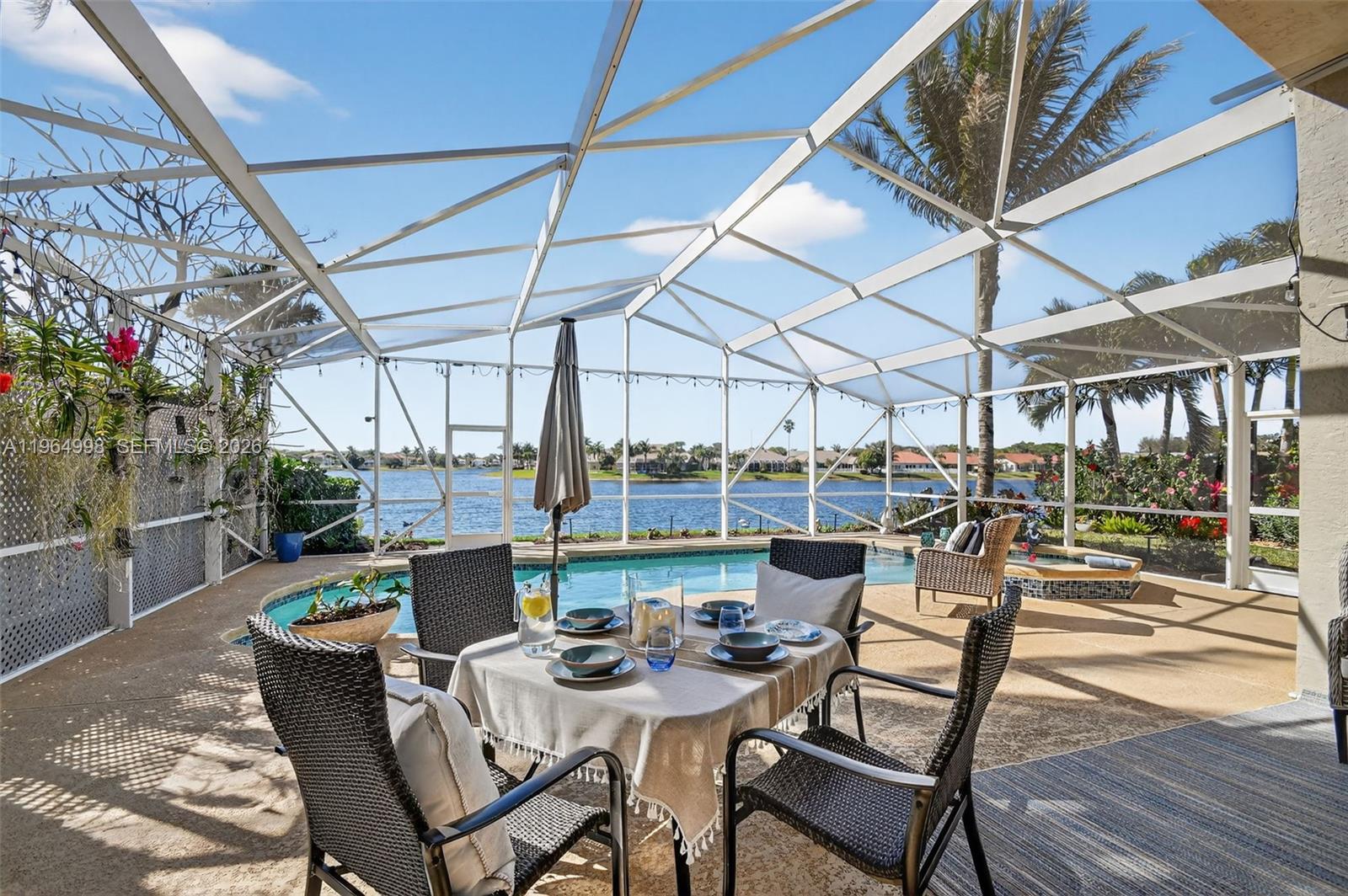 Completely remodeled 3-bedroom, 2-bathroom waterfront single-family home in the highly desirable Lake Charleston community! This beautifully updated residence offers breathtaking water views and unforgettable sunsets. Enjoy true Florida living with a resurfaced saltwater pool featuring a heater and spa with jets, new ceramic finish, screened porch, and child safety fence. The open layout showcases stunning lake views, a modern white kitchen with abundant cabinetry and stainless steel appliances, and a desirable split floor plan. The private primary suite is situated on its own side of the home for added comfort. Additional highlights include a utility room with new washer and dryer, 2-car garage, new sprinkler pump drawing water from the lake, owned solar panels for the water heater, roof (2016), and A/C (2020). Porcelaine flooring throughout and laminated wood floor in the guests bedrooms.Beautiful landscaping surrounds the home, including a striking Sylvester Palm with diamond cut in the front yard. Located on a large lake allowing non-motorized watercraft and battery-powered boats. Residents enjoy a clubhouse with two pools, pickleball, and tennis courts. All ages welcome. Zoned for three A-rated schools. Don't wait, it will be too late!