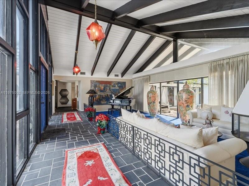 Offered for the first time since the 1970s, this rare generational estate in Eldorado Estates in Plantation is an Asian-influenced masterpiece of architecture and Japanese design, with a layout perfectly suited for multigenerational living. This expansive 5BD/4BA home spans OVER 4,400 SF of single-level living on a prime corner half-acre+ lot and showcases intentional horseshoe flow surrounding an intimate courtyard pool, creating seamless indoor-outdoor harmony. Recognized as a true architectural piece, the home was even selected for HGTV’s America’s Most Unique Homes, though declined due to timing. From the imported New Zealand blue metal tile forever roof to Zen waterfalls, gardens, shoji doors, a private dining room and office, sunken bar, and dramatic stove pipe fireplace, every detail reflects thoughtful craftsmanship and timeless vision. Walls of glass, soaring ceilings, and expansive living spaces celebrate light, privacy, and architectural integrity, offering flexibility for extended family, creative workspaces, or a future trophy estate. Held by 1 family for over 5 decades, this is not a trend or a flip but a legacy property with provenance, presence, and the rare opportunity to preserve, elevate, or reimagine a paradigmatic showpiece in one of Plantation’s most established enclaves.