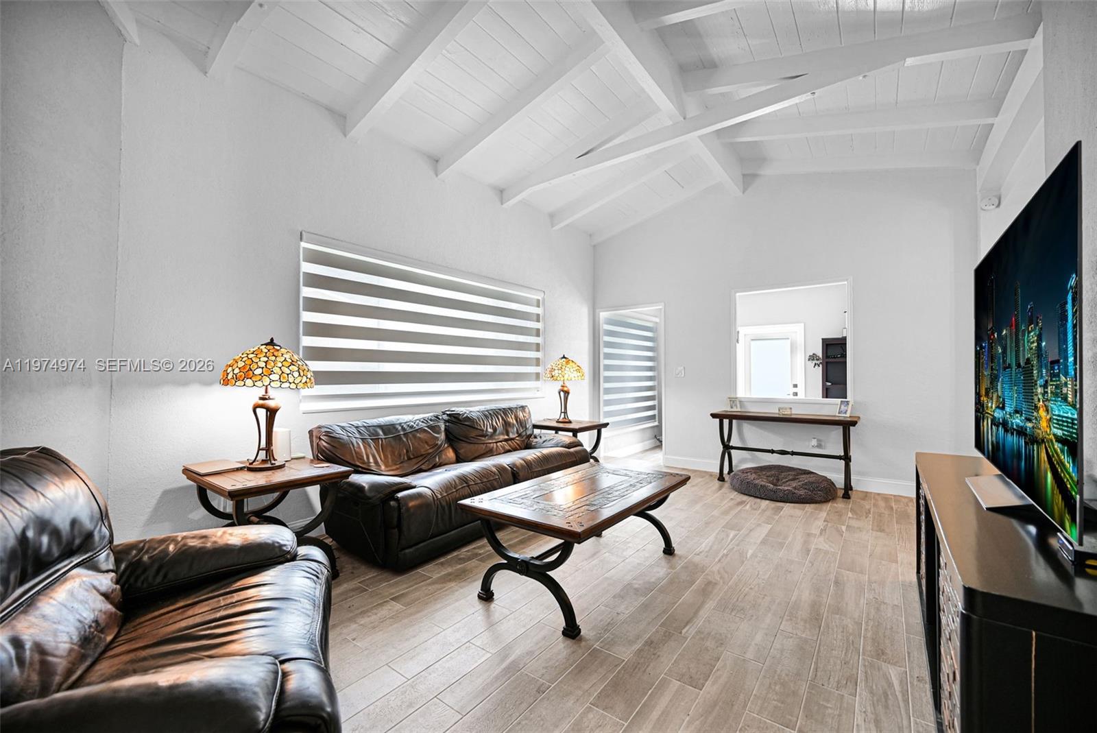 Amazing opportunity to own this newly remodeled turn-key home in Miami’s coveted East Shorecrest neighborhood. The soaring cathedral ceiling with exposed beams makes this 3-bedroom, 2-bathroom house feel bright and airy and offers a seamless blend of Old-World charm and modern amenities. Major upgrades include a new Metal Roof 2025, Impact Windows & Doors 2025, plumbing and tankless water-heater 2024. Recent renovations of the kitchen and bathrooms feature stainless steel appliances, contemporary cabinetry and modern fixtures. Other upgrades include new porcelain wood-grain flooring through-out, LED light fixtures, tiled entry walk-way, interior and exterior paint and motorized zebra window treatments. The A/C system and air ducts recently had a full maintenance service (no central heating). The property is on a quiet street just walking distance from Biscayne Bay and sits on a generous 8,332 sf lot with ample room for your dream pool. Best of all, no HOA!
