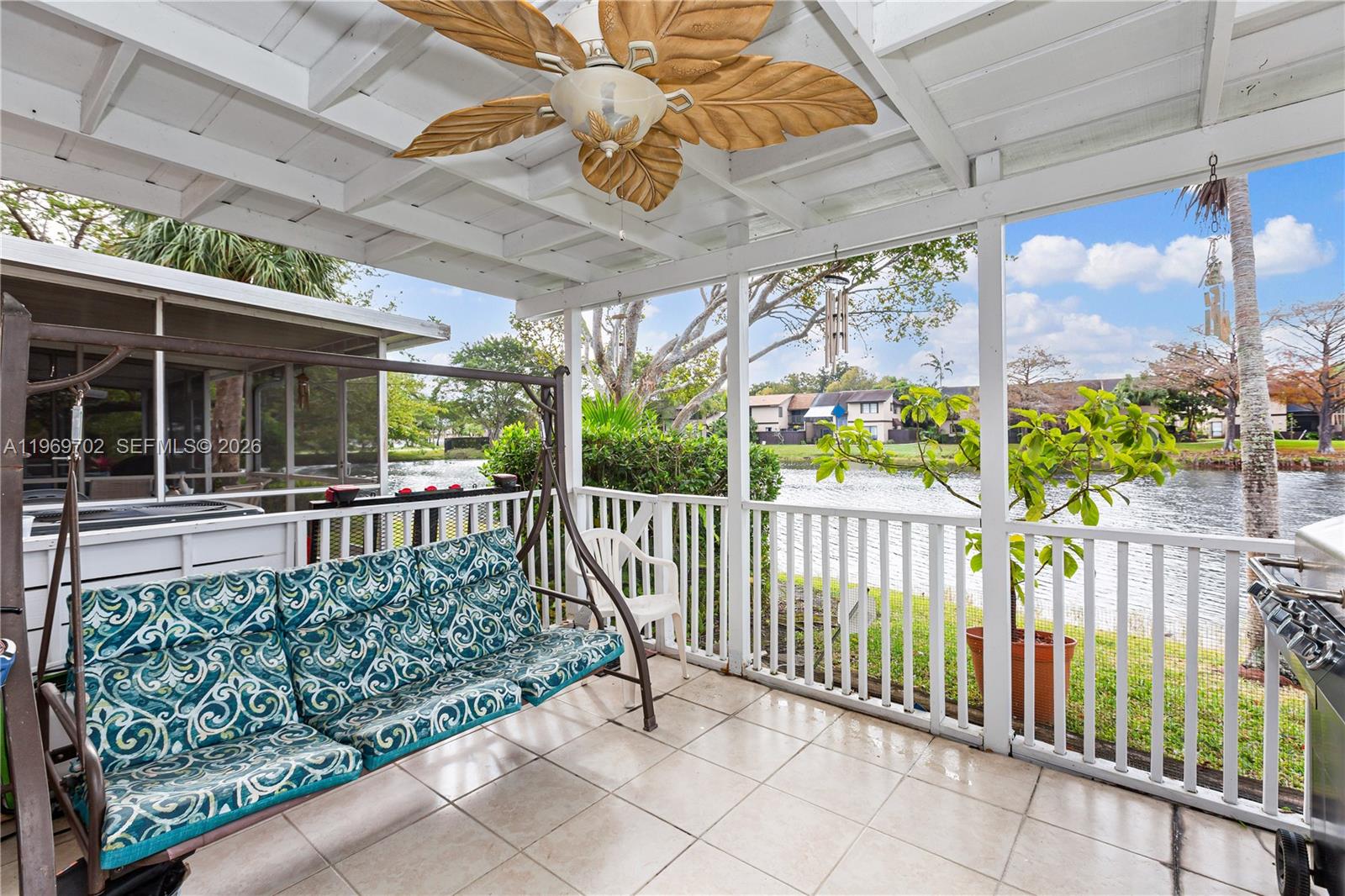 Spacious and bright living area featuring 2 bedrooms, 2.5 bathrooms, Enjoy serene lake views from the patio and the primary bedroom. Additional space can be used as Den/Office, etc. Freshly painted throughout with laminate flooring and ceramic tile in the primary bedroom. Accordion hurricane shutters. NEW Roof. A well-maintained community, conveniently close to shopping, dining, entertainment, and major highways.