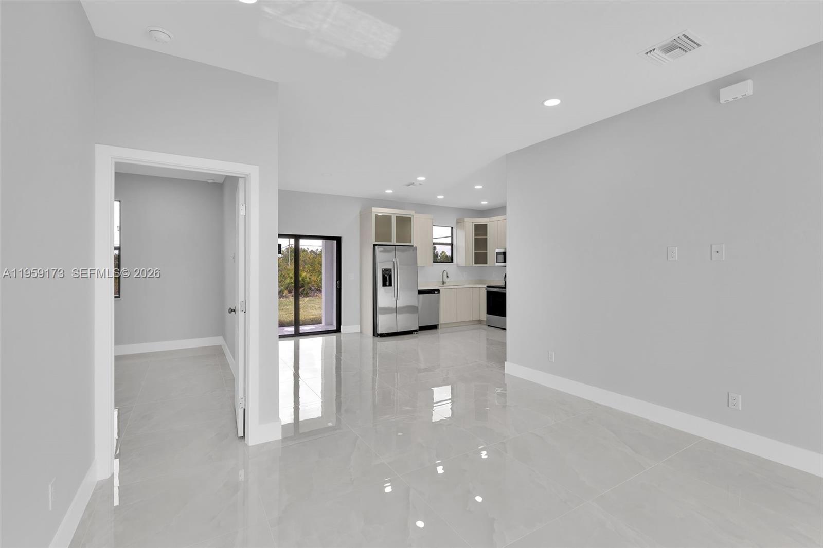 Seller is motivated and ready to make a deal! 10 Year Structural Warranty and 3% seller credit toward buyer’s closing costs with full-price offer. Local, experienced builder with outstanding customer support. 100% completed and ready to move-in. Be sure to click on the 3D virtual tour! This beautifully designed new construction home sits on a corner lot and offers a modern living space. Featuring 3 bedrooms, 2 bathrooms, and a 1-car garage, the home includes 10-ft ceilings, hurricane-impact windows and doors, and washer/dryer installed in a separate laundry room. Enjoy 32x32 porcelain tile flooring throughout, high-profile baseboards, and a spacious kitchen with custom cabinetry, quartz countertops, and a full suite of Samsung stainless-steel appliances. Bathrooms showcase quartz finishes, glass shower doors, and premium fixtures. The property also includes a full irrigation system. Surrounded by new homes in the desirable 33976 zip code, this residence combines style, quality, and value. Don’t miss your chance!