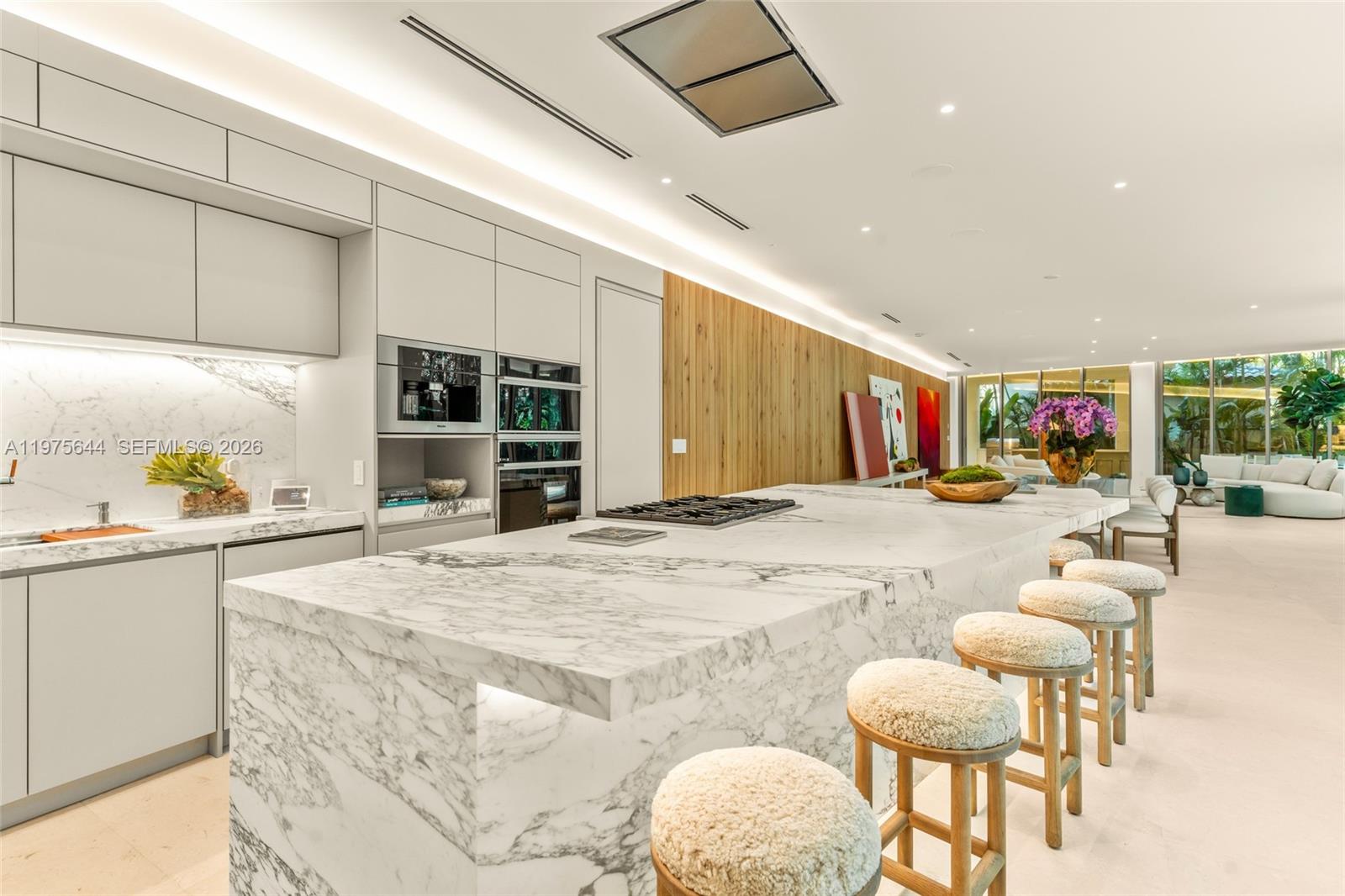 Introducing a brand-new Tropical Modern ARCHITECTURAL MASTERPIECE in North Coconut Grove set on an oversized 11,550 SF lot. Designed by renowned architect Simon Bissu and developed by Luxom Developments, this 6,194 SF residence offers 8 beds and 8.5 baths with refined finishes including natural limestone, marble, & warm wood tones. Lush, intentional landscaping leads you past a majestic oak tree the home was designed around and into your foyer which flows to a dramatic great room with floor-to-ceiling telescopic doors overlooking the resort-style pool and greenery beyond. The chef’s kitchen features premium appliances, a walk-in pantry, and staff quarters. First floor offers 3 bedrooms with access to the expansive front yard, while upstairs features 5 ensuite bedrooms and a large family room with a treetop balcony. The serene primary suite includes telescopic doors overlooking your yard, a spacious walk-in closet, and a spa-like marble bath. A rare opportunity to own a truly one of a kind newly built estate in one of the Grove’s most coveted locations. Near top schools, Cocowalk, Brickell, Downtown Miami, and all that Miami has to offer!