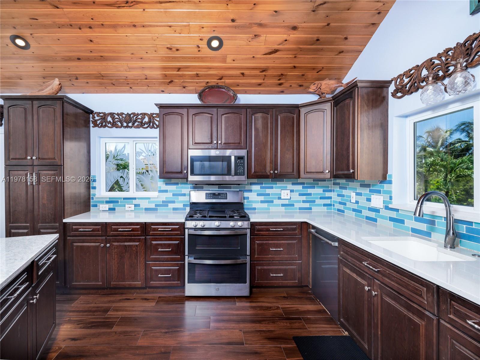 A rare waterfront estate along a 200-foot wide canal with a 110-foot dock and direct ocean access, capturing the essence of Florida Keys living. Spanning over 3,200 square feet, this residence features four bedrooms and three-and-a-half baths, ideal for hosting family and guests in true island style. Inside, a dramatic grand staircase and soaring two-story great room create an inviting yet refined atmosphere. Walls of windows frame tranquil water views and fill the space with natural light, providing the perfect setting for entertaining or relaxing after a day on the water. The kitchen offers granite countertops, stainless steel appliances, and an open layout that seamlessly connects the living and dining areas. Outside, your private waterfront retreat awaits. The 110-foot concrete dock with dual 40-foot finger piers provides exceptional deep-water dockage for multiple vessels, including large yachts, with quick Atlantic access. Boaters will appreciate the floating jet ski and kayak docks, davits, fish-cleaning station, and ice machine. Surrounded by lush tropical landscaping, the heated pool and spa create a secluded oasis where island breezes and sunshine define everyday living. Whether enjoying mornings on the water, afternoons poolside, or evenings under the stars, this property delivers the luxury and lifestyle of the Florida Keys.