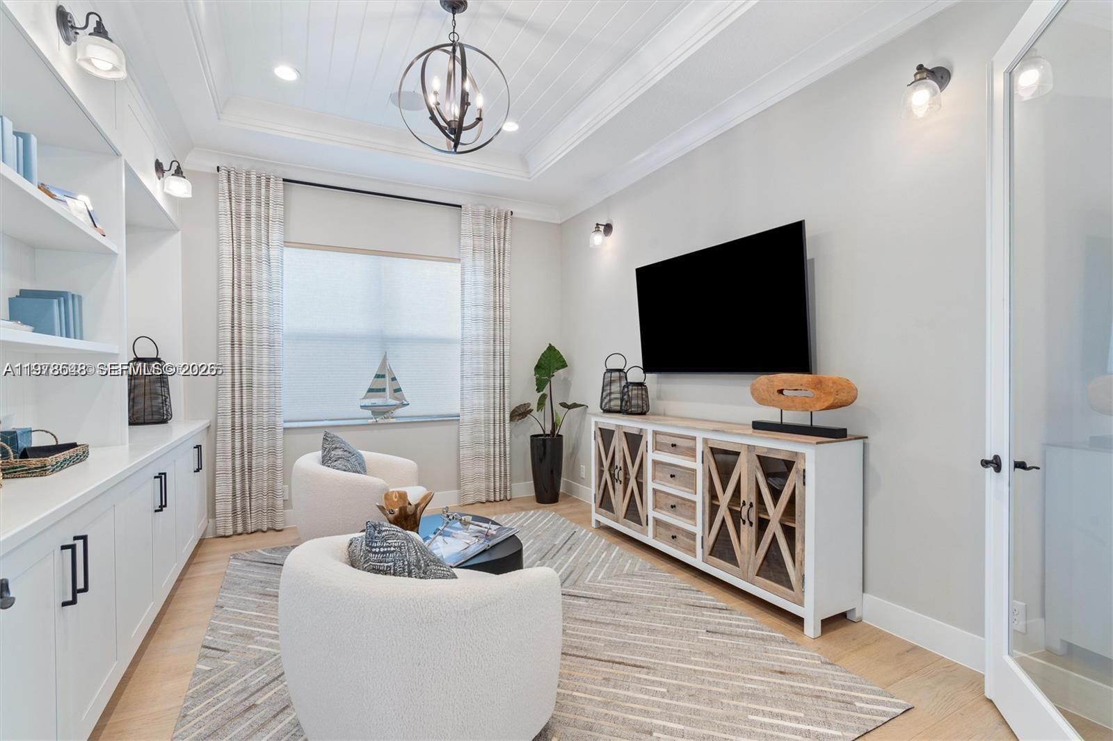 Welcome to the Toll Brothers Watermark model home — a refined blend of elegance and modern luxury. This impeccably appointed residence showcases a resort-style saltwater pool with heater, sun shelves, and spa, complemented by a fully outfitted outdoor kitchen featuring dual refrigerators and a pristine, never-used BBQ. Electric screens enclose the lanai for seamless indoor-outdoor living year-round.Inside, designer finishes, professional décor, and high-end appliances elevate every space. A spacious three-car garage, custom landscaping, and curated outdoor lighting complete the home’s polished presentation. Located in the prestigious Watermark at Avenir, residents enjoy scenic trails, upscale shopping, and an elevated lifestyle in one of the area’s most desirable communities.