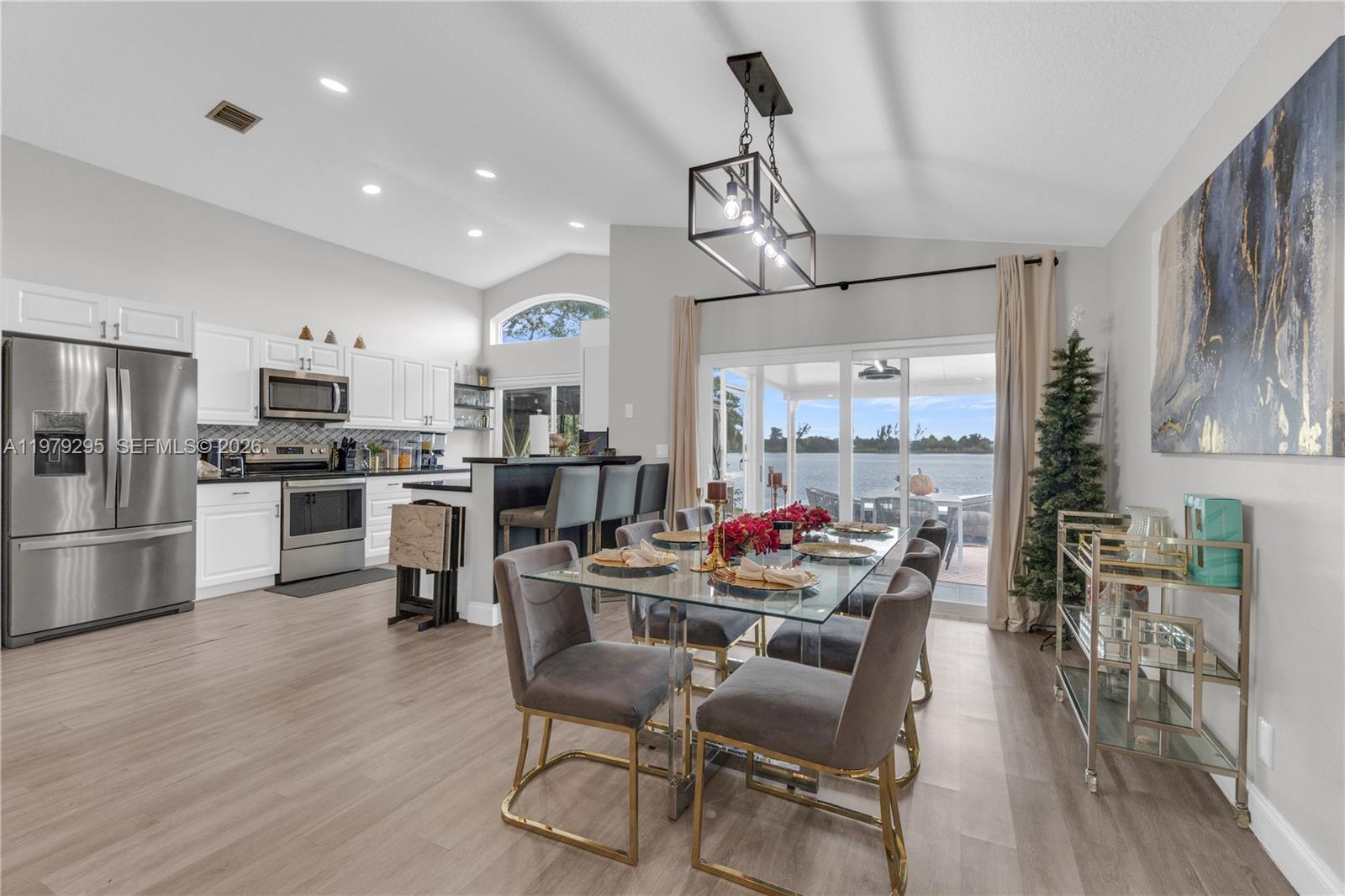 From the moment you enter this beautifully remodeled 4 bed 2 bath home you are welcomed by soaring high ceilings, an open layout, and an abundance of natural light that pours through all the brand new impact-rated windows (2025). The serene lake view from your new kitchen (2022) and custom pergola give you a tranquil ambiance perfect for both relaxation and entertaining. The split bedroom floor plan is ideal for families, and the bathrooms have been tastefully upgraded to provide a spa-like experience (2022). Updates include water heater (2025) washer dryer (2025) impact garage door (2025) and more. Please note the roof is original and sellers are open to offering a credit with the right offer. Please note tax record reflects 3 bedrooms but the den (4th bedroom) has a window and a closet.