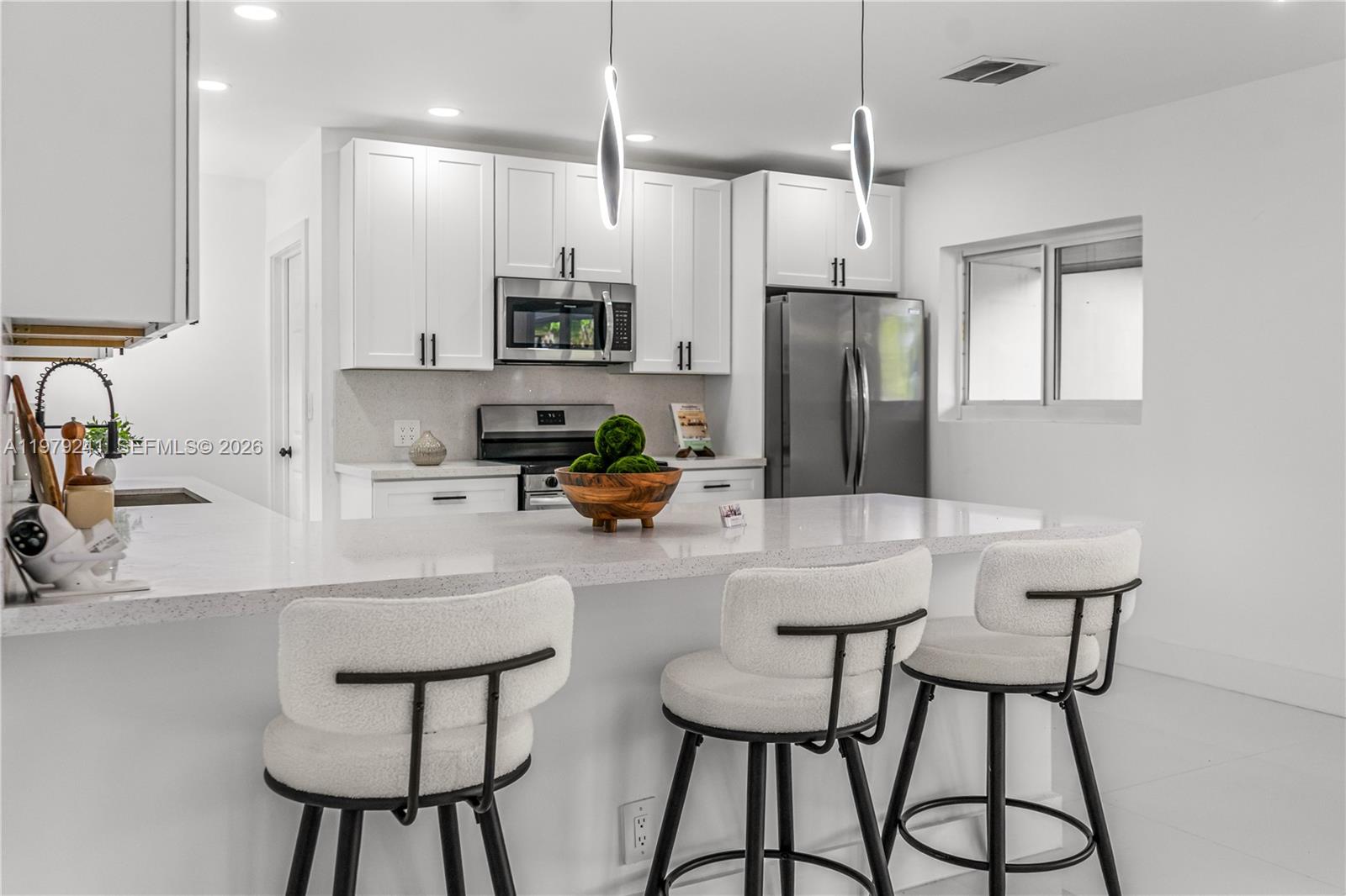 Completely remodeled 4-bedroom, 3-bathroom home in the heart of Plantation situated on an oversized 16,471 sq ft lot. This beautifully updated residence offers approximately 1,832 sq ft of living space and has been fully renovated with modern finishes throughout. The home features a bright open-concept layout with a brand new kitchen including quartz countertops, stylish backsplash, new cabinetry, and stainless steel appliances. Upgrades include porcelain flooring throughout, impact windows, new AC ductwork, new electrical throughout the home, updated electrical for the newly constructed 424 sq ft addition, and fully renovated bathrooms. Step outside to a spacious private backyard featuring a pool, brand new patio area, and newly fenced yard—perfect for entertaining or relaxing. The property also includes a 2-car attached garage with epoxy flooring and a brand new circular driveway offering ample parking and excellent curb appeal. Ideally located just minutes from Broward Mall, Plantation Walk, parks, restaurants, and top-rated schools including Plantation Park Elementary, Seminole Middle School, and South Plantation High School. Convenient access to Broward Boulevard, Downtown Fort Lauderdale, Las Olas Boulevard, Fort Lauderdale Beach, and Fort Lauderdale-Hollywood International Airport. Move-in ready and vacant for immediate showings.