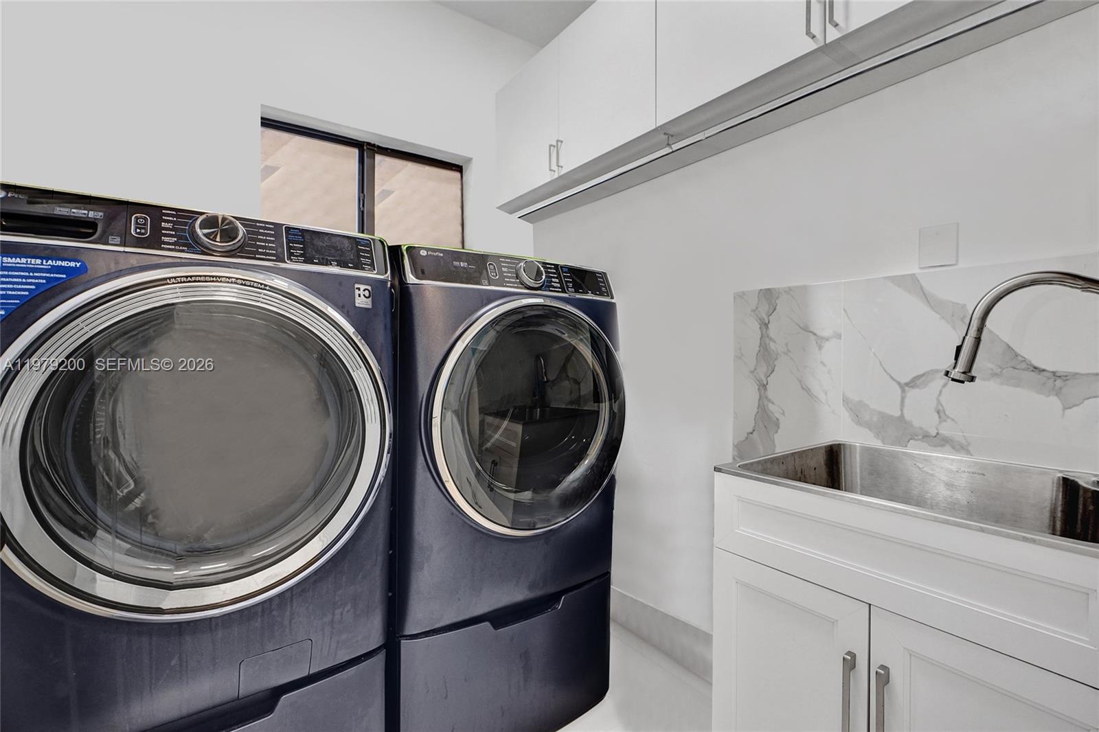 Stunning two story residence located on a quiet cul-de-sac with only four homes offering privacy, space & a functional layout for modern living. Spacious 5 bedrooms/4 bathrooms home features high ceilings, abundant natural light and an open floor plan ideal for everyday living & entertaining. Main level offers expansive living & dining areas that flow into a gorgeous kitchen with wood cabinetry, modern finishes, induction cooktop & wine cooler. One bedroom is located on the first floor along with a versatile extra room ideal for office, gym, playroom or potential 6th bedroom with a full bath adjacent to both. Oversized primary suite provides a private retreat with office area & custom walk in closet for maximum storage. Beautifully upgraded bathrooms throughout. Includes newer A/C systems, impact windows & doors, automatic curtains, new lighting & fixtures, alarm/camera security system, new pool pump & heater, new jacuzzi pump, top of the line washer & dryer. Garage features tile flooring, new mini split A/C and private entrance, offering excellent potential for a mother in law suite, gym or workspace. Backyard designed for entertaining with resort style pool, covered patio & outdoor kitchen plus fence for added privacy and security. Expanded driveway provides additional parking. Located near major roads, shopping, dining & schools. Move in ready and no association. Schedule your showing today.