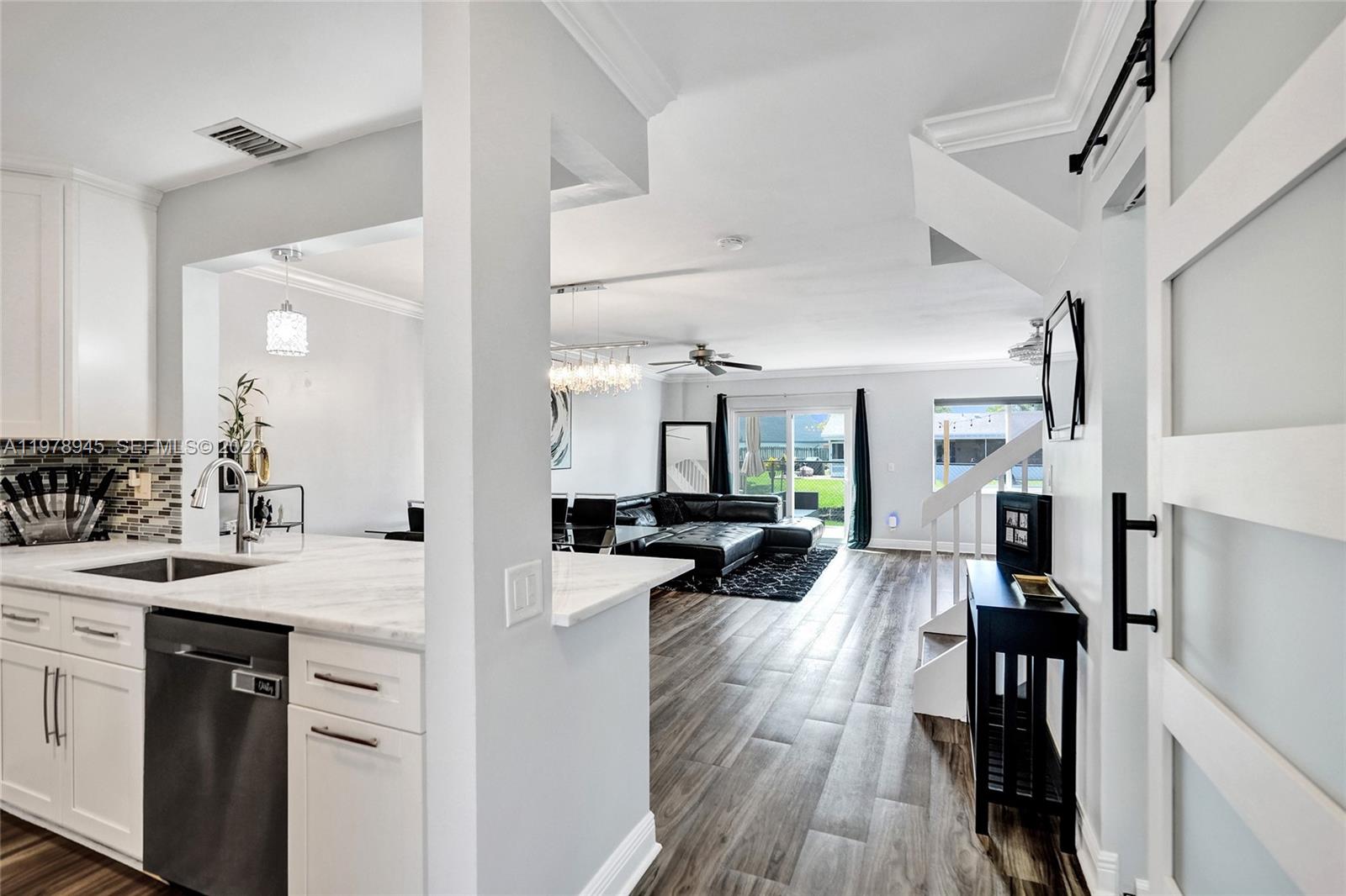 Beautifully updated 3-bedroom, 2.5-bath waterfront townhome located in the desirable Springtree West Cove community in Sunrise. This spacious two-story home offers 1,556 sq ft of living space with an open layout, modern finishes, and peaceful canal views. The updated kitchen features white shaker cabinetry, quartz countertops, stainless steel appliances, and modern backsplash, opening to the main living and dining areas. Upstairs you'll find a large primary suite with custom closet built-ins and an updated bathroom, plus two additional bedrooms and full bath. Step outside to your private patio and deck overlooking the canal, perfect for relaxing or entertaining. Major upgrades include impact windows (2025), tankless water heater (2023), HVAC (2017), and roof (2008). Additional features include vinyl flooring, interior laundry, attached garage, and multiple parking spaces. Low HOA includes lawn maintenance and community pool. Conveniently located near Sawgrass Expressway, Sawgrass Mills Mall, Amerant Bank Arena, parks, shopping, dining, and top-rated schools. A great opportunity to own a move-in ready waterfront home in the heart of Sunrise.