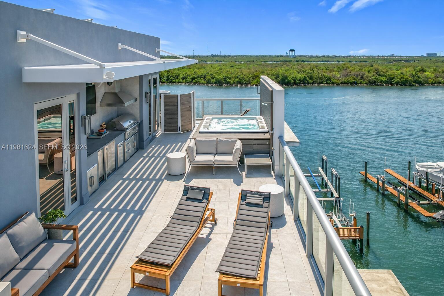 Corner waterfront 3BR/3.5BA townhome with ocean views to the east and Intracoastal views to the west from every room, with unobstructed sunrises and sunsets. Spanning 5 private levels, this residence features 13’ ceilings, a private panoramic elevator, Italian cabinetry, Gaggenau appliances, and integrated technology throughout. The full-floor primary suite includes dual walk-in closets and a spa shower with ocean views. A rooftop terrace with summer kitchen and jacuzzi enhances indoor-outdoor living. Included is a 55’ deeded marina slip with direct ocean access, no fixed bridges, and a double jet-ski lift.