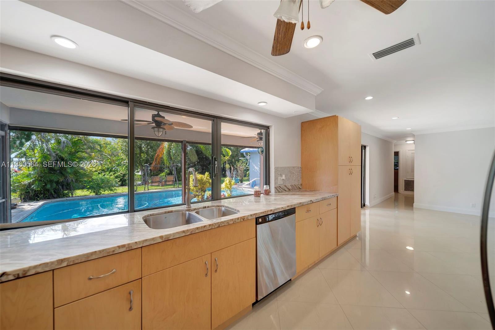 Timberlake in Cooper City! Those who know CC know this is a highly coveted area and homes like this rarely come available - This is a spacious 3-bedroom, 2-bath pool home on the water with a nature lover's back yard. Enjoy nearby top-rated Cooper City schools. Convenient location near Brian Piccolo Park, Tree Tops Park, shopping, dining, major highways and houses of worship. This home features tile and laminate flooring throughout, full hurricane protection on all openings, and a 2-year-old roof with warranty. A/C is newer, as is the pool pump and automatic saltwater system. Pride of ownership is apparent. All systems have been recently updated or meticulously maintained. Interior has been professionally painted with SW Snowbound, the best off-white 'color' and the best paint money can buy. Kitchen features gorgeous granite countertops, tons of cabinetry for easy storage and organization options, stainless steel appliances, and overlooks the pool and backyard. Washer and Dryer are indoors 'under air' in a generously-sized laundry room. Enjoy exceptional outdoor living with a retractable screened patio facing the pool, a natural travertine pool deck, and a spectacular oversized backyard overlooking the canal. Lush foliage and beautiful landscaping create a classic Old Florida tree canopy feel, providing shade, privacy, and a serene backyard retreat. Easy to show. Call today for a private tour.