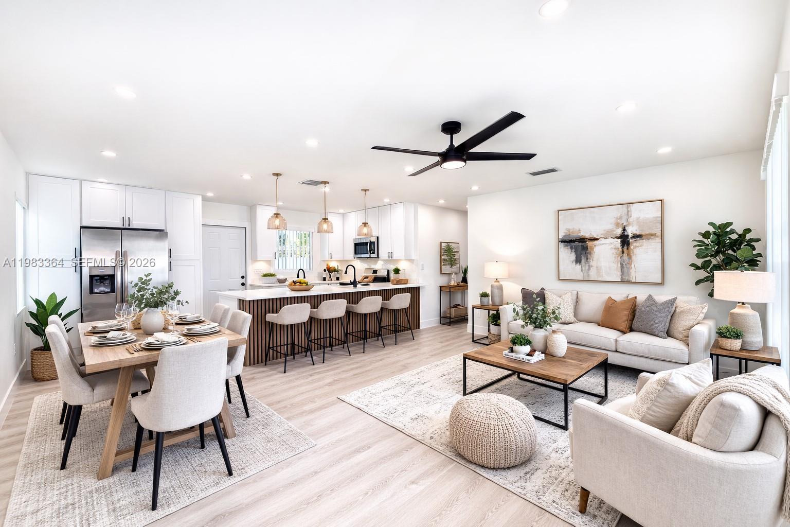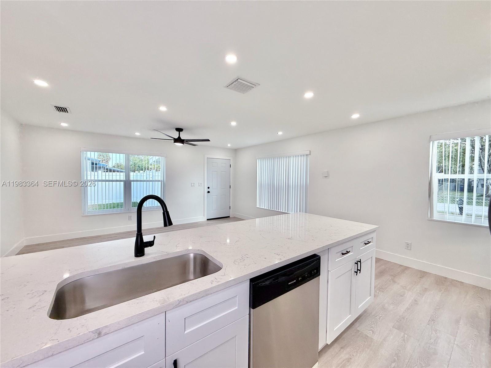 Seller to contribute $5,000 towards buyer's closing costs. Experience ultimate peace of mind in this centrally located, fully renovated Lauderhill single-family home featuring impact windows and doors throughout for maximum security and insurance savings. This stunning 3-bedroom, 2-bathroom residence offers a 2023 roof, newer AC, and newer water heater, ensuring years of worry-free living with NO HOA! The interior is bathed in natural light and features luxury scratch-proof and waterproof vinyl flooring throughout, an en-suite bedroom, fresh paint inside and out, and high-end porcelain tile in the bathrooms, which offer both a walk-in shower and a soaking tub. The kitchen boasts white cabinetry, new stainless steel appliances, 2 pantries, and quartz countertops with a giant counter area designed for seating. Modern conveniences continue with a new front-loading washer and dryer. The exterior is equally impressive, featuring a covered carport and a massive, fully fenced front and back yard equipped with a full sprinkler system for ultimate privacy and curb appeal.